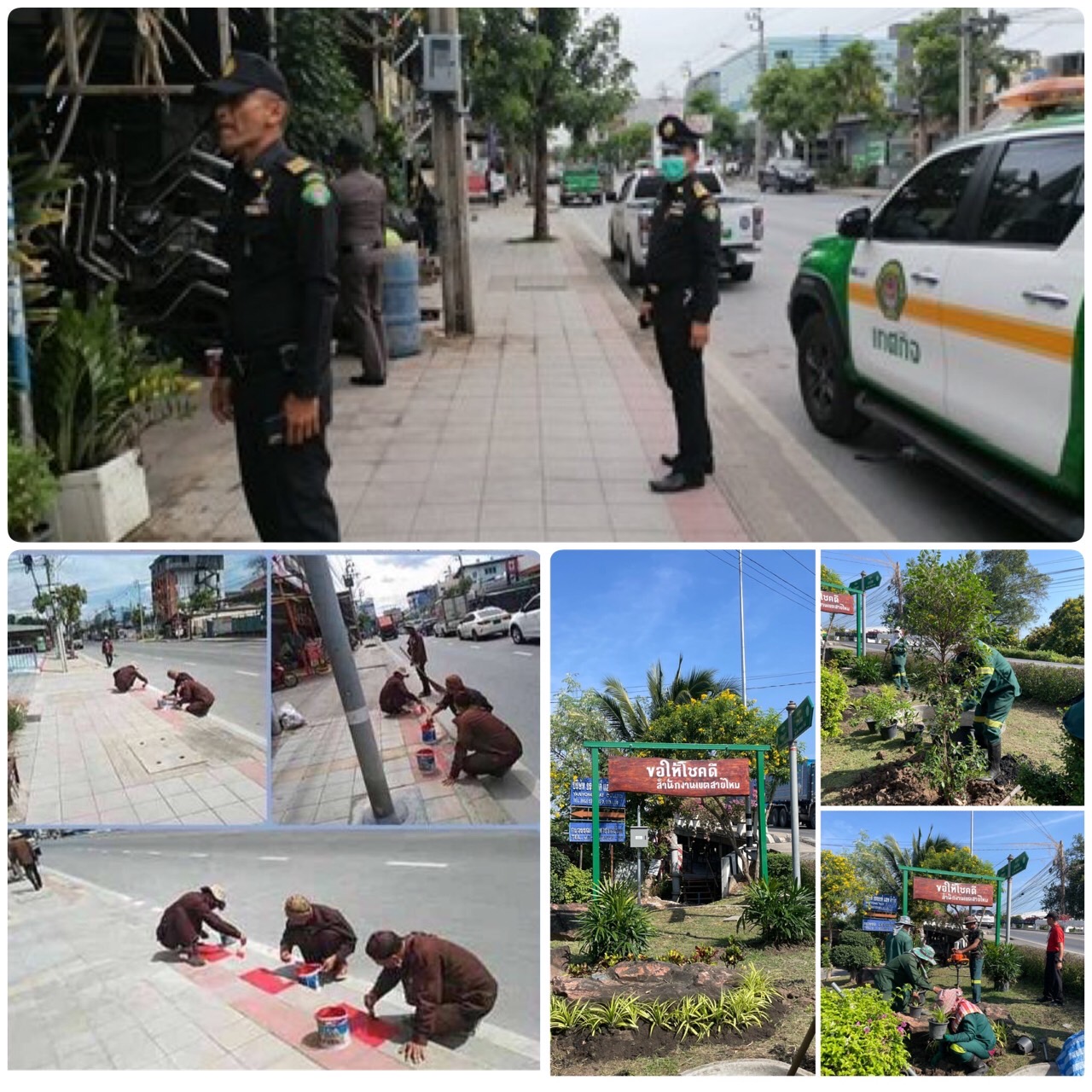 ![]() | 28-12-2023 | 0.02 | ![]() | 1. ปรับปรุงภูมิทัศน์สวนหย่อมถนนเฉลิมพงษ์ ดูแล บำรุงรักษาต้นไม้ จัดสวน ปลูกต้นไม้ 2. ทำการทาสีขาวแดง ขอบถนนช่วงก่อนทางขึ้นสะพาน ความยาวประมาณ 15 เมตร 3.เจ้าหน้าที่เทศกิจดำเนินการตรวจความเป็นระเบียบเรียบร้อยทางเท้า | |