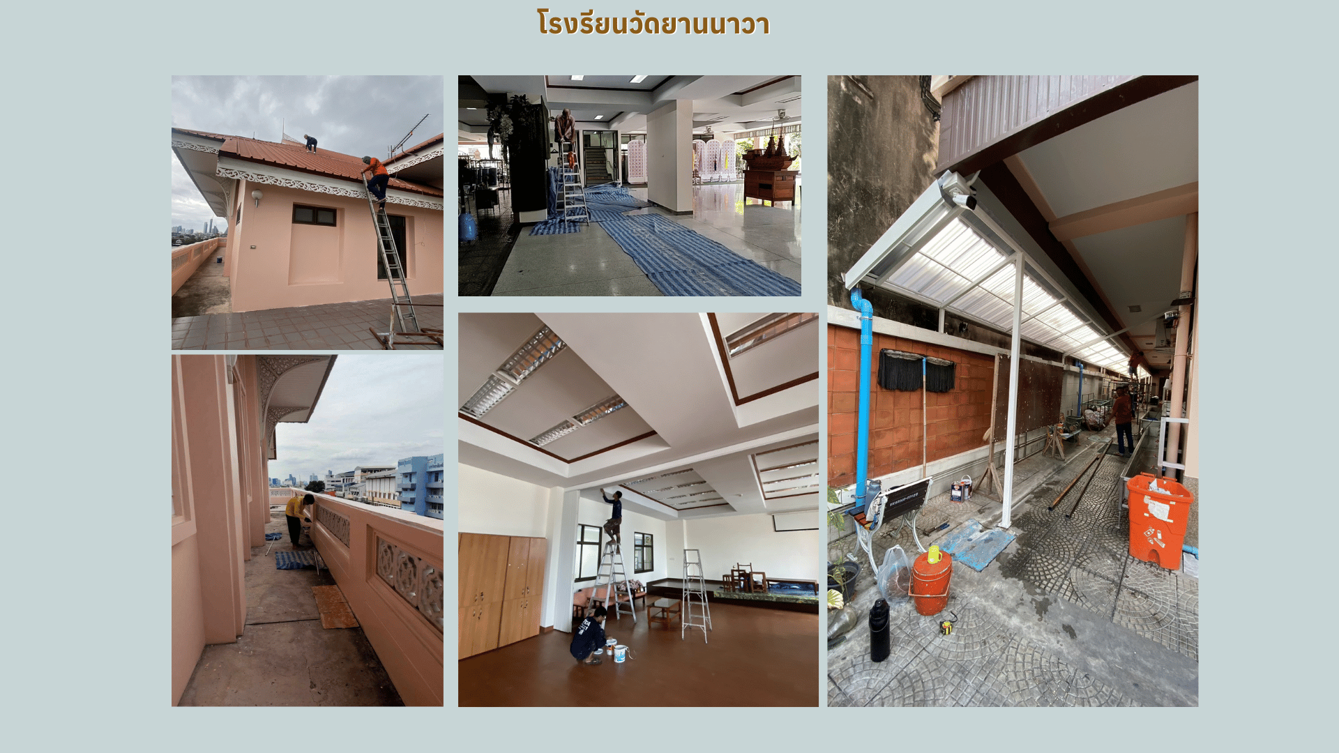 30-09-20241.00ปรับปรุงกายภาพโรงเรียนวัดยานานาวา งบประมาณ 3,830,000 บาท - ทาสีภายในภายนอกอาคารเรียน - เปลี่ยนผนังห้องน้ำที่ชำรุด - ซ่อมแซมฝ้าโรงยิมที่ชำรุด ชั้น 6 - ติดตั้งระบบกักเก็บน้ำบนดิน - ซ่อมแซมเชิงชายไม้ฉลุ - ซ่อมแซมปั้นลมตามรูปแบบเดิม - ซ่อมแซมอุดรอยรั่วหลังคา - ซ่อมแซมอุดรอยรั่วครอบสันหลังคา -  ซ่อมแซมอุดรอยรั่วรางน้ำฝน (ตะเฆ้ราง) - ติดตั้งกันสาดข้างอาคารเรียน  ชั้น 1 - ค่าครุภัณฑ์