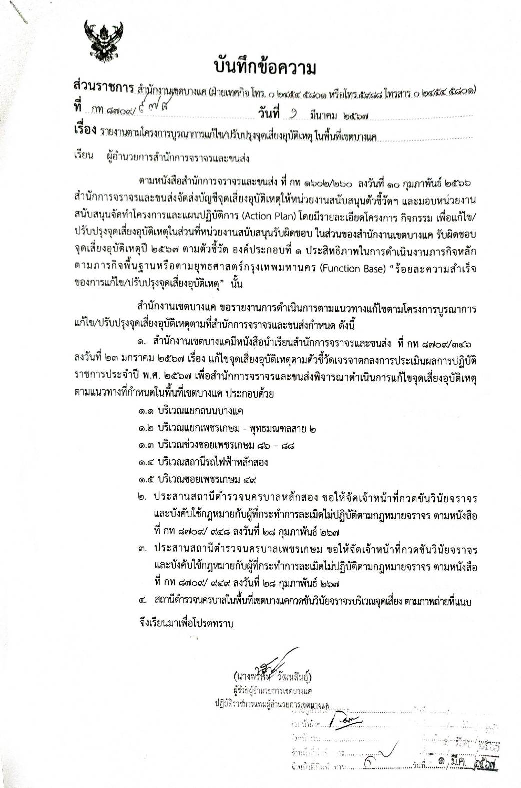 5 | เข้าร่วมประชุมกับ สจส. เรื่องการแก้ไขจุดเสี่ยงอุบัติเหตุ 24 พ.ย. 66 | 10.00 | 24-11-2023 | 24-11-2023 |