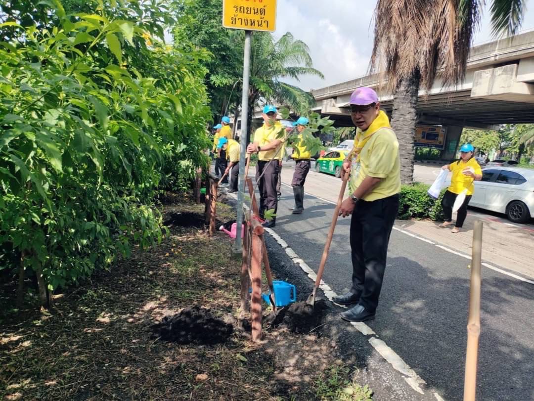 15-01-202495.002 มกราคม 2567 ปลูกต้นไม้ใต้ทางรถไฟฟ้าสายสีเหลือง ถ.ศรีนครินทร์ ต้นทองอุไร 95 ต้น