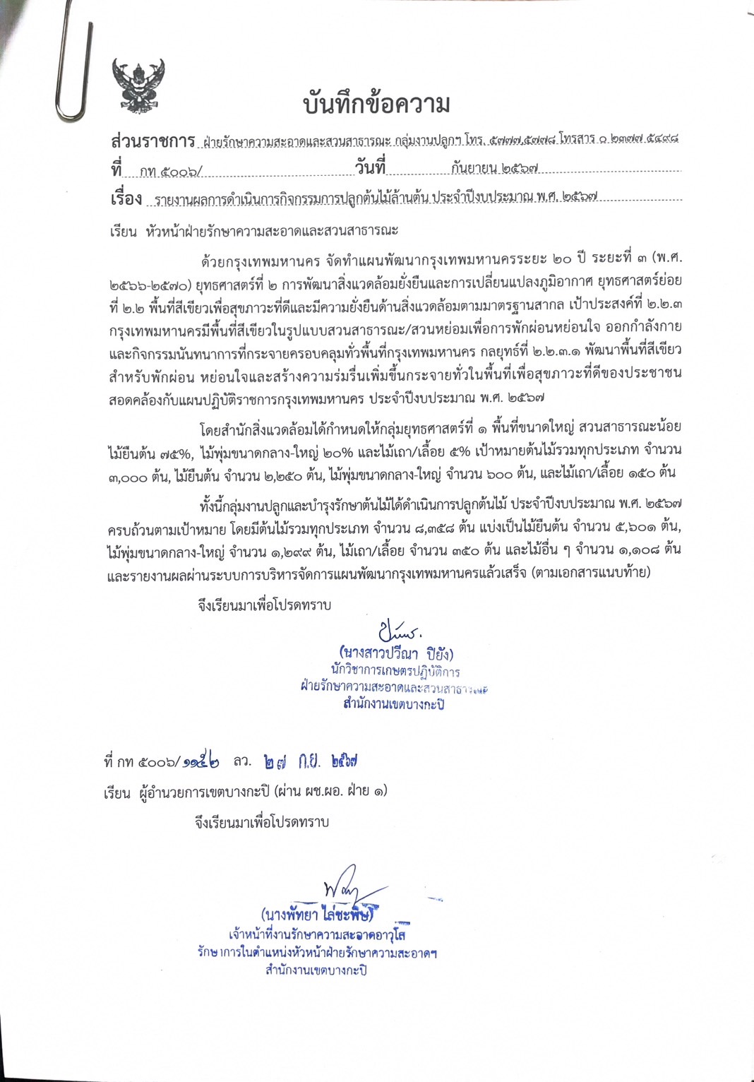 -ปลูกต้นไม้ (ต้น)0.00100.00สำนักงานเขตบางกะปิฝ่ายรักษาความสะอาดและสวนสาธารณะ
