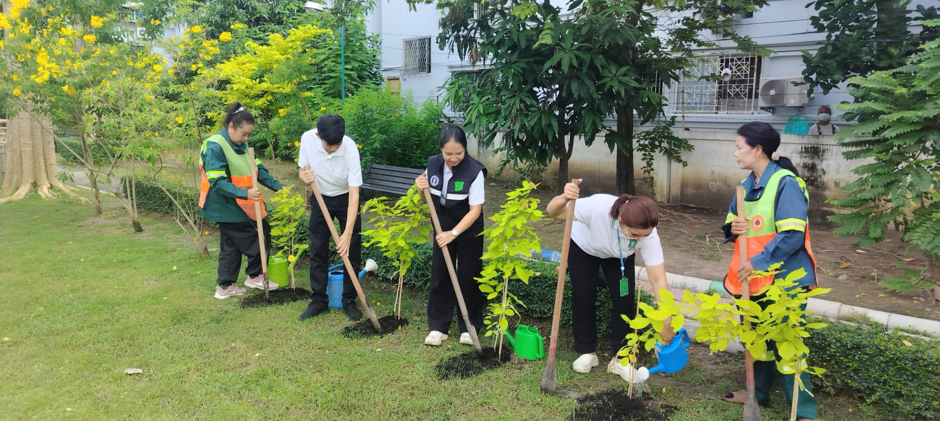 27-09-2024131.0025 กรกฎาคม 2567 ปลูกต้นรวงผึ้ง 1 ต้น ต้นราชพฤกษ์ 10 ต้น ต้นอินทนิลน้ำ 120 ต้น บริเวณสถานีตำรวจนครบาลหัวหมาก