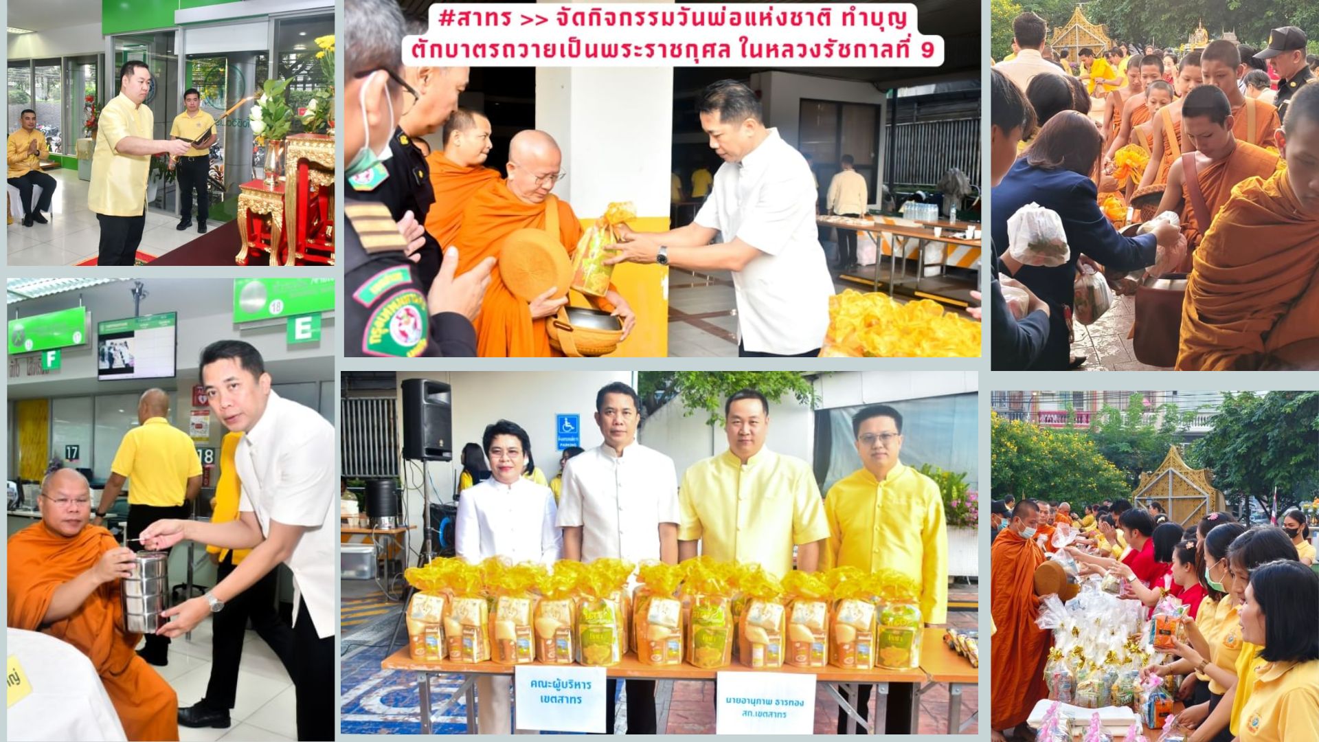 (4 ธ.ค. 2567) เวลา 07.00 น. นายธวัชชัย แพงไทย ผู้อำนวยการเขตสาทร พร้อมด้วย นางสาวพวงเพชร ฝากาทอง ผู้ช่วยผู้อำนวยการเขต และทีมผู้บริหารเขตสาทร ให้เกียรติ นายอานุภาพ ธารทอง สมาชิกสภากรุงเทพมหานคร เขตสาทร เป็นประธานในพิธีทำบุญถวายภัตตาหารเช้า ปิ่นโตภัตตาหารเพล และทำบุญตักบาตรข้าวสารอาหารแห้งแด่พระสงฆ์ในพื้นที่เขตสาทร 5 วัด จำนวน 50 รูป เพื่อถวายเป็นพระราชกุศลแด่ พระบาทสมเด็จพระบรมชนกาธิเบศร มหาภูมิพลอดุลยเดชมหาราช บรมนาถบพิตร (รัชกาลที่ 9)