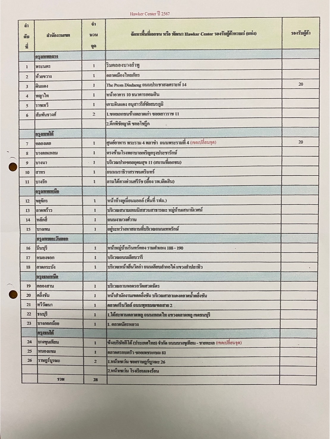 31-05-20240.00อยู่ระหว่างการดำเนินการปรับปรุงพื้นที่ให้เป็น Hawker Center