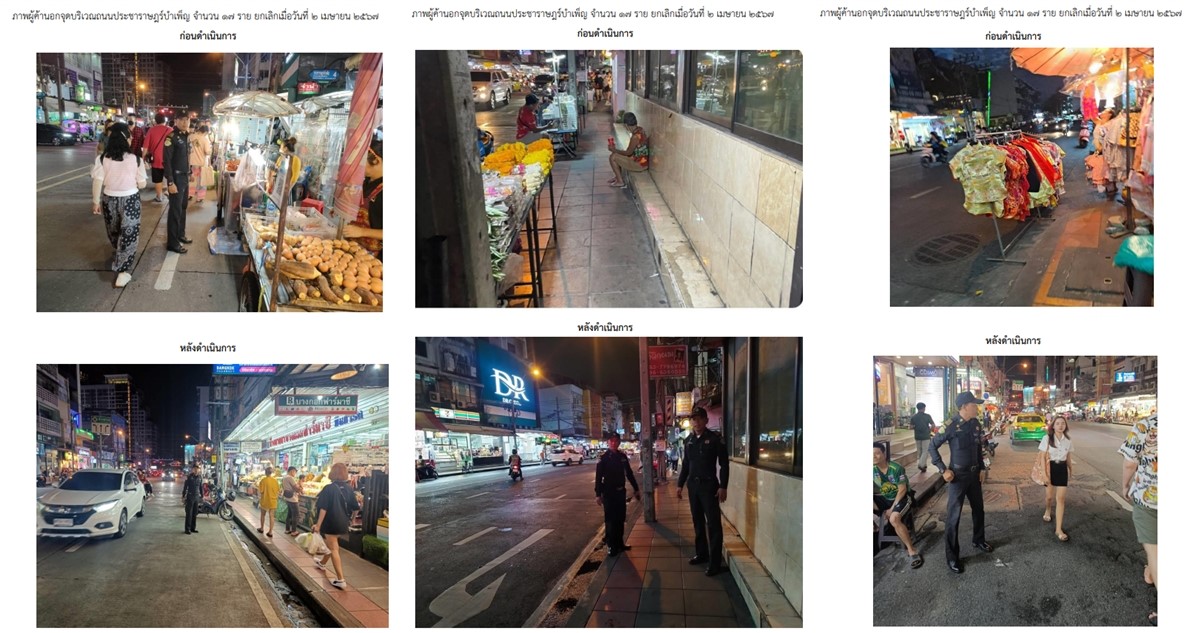 ![]() | 25-03-2025 | 0.00 | 1. ตรวจตรา กวดขัน ประชาสัมพันธ์ ผู้ค้าหาบเร่ – แผงลอย นอกพื้นที่จุดผ่อน เขตดินแดง จำนวน 2 จุด ได้แก่ บริเวณหน้าบริษัทไทยประกันชีวิต จำกัด ถนนรัชดาภิเษก และหน้าตลาดห้วยขวาง ซอยประชาสงเคราะห์ 34 ให้ทราบประกาศกรุงเทพมหานคร เรื่อง หลักเกณฑ์ วิธีการ และเงื่อนไขการ กำหนดพื้นที่ทำการค้าและการขาย หรือจำหน่าย สินค้าในที่สาธารณะ (ฉบับใหม่) ลงวันที่ 29 สิงหาคม พ.ศ. 2567 และให้หยุดทำการค้าทุกวันจันทร์ พร้อมล้างทำความสะอาดทางเท้าบริเวณจุดทำการค้า 2. จัดระเบียบผู้ค้านอกพื้นที่จุดผ่อนผันในพื้นที่เขตดินแดงตามหลักเกณฑ์ที่กำหนด และตรวจ ประเมินอย่างน้อยเดือนละ 1 ครั้ง | ||