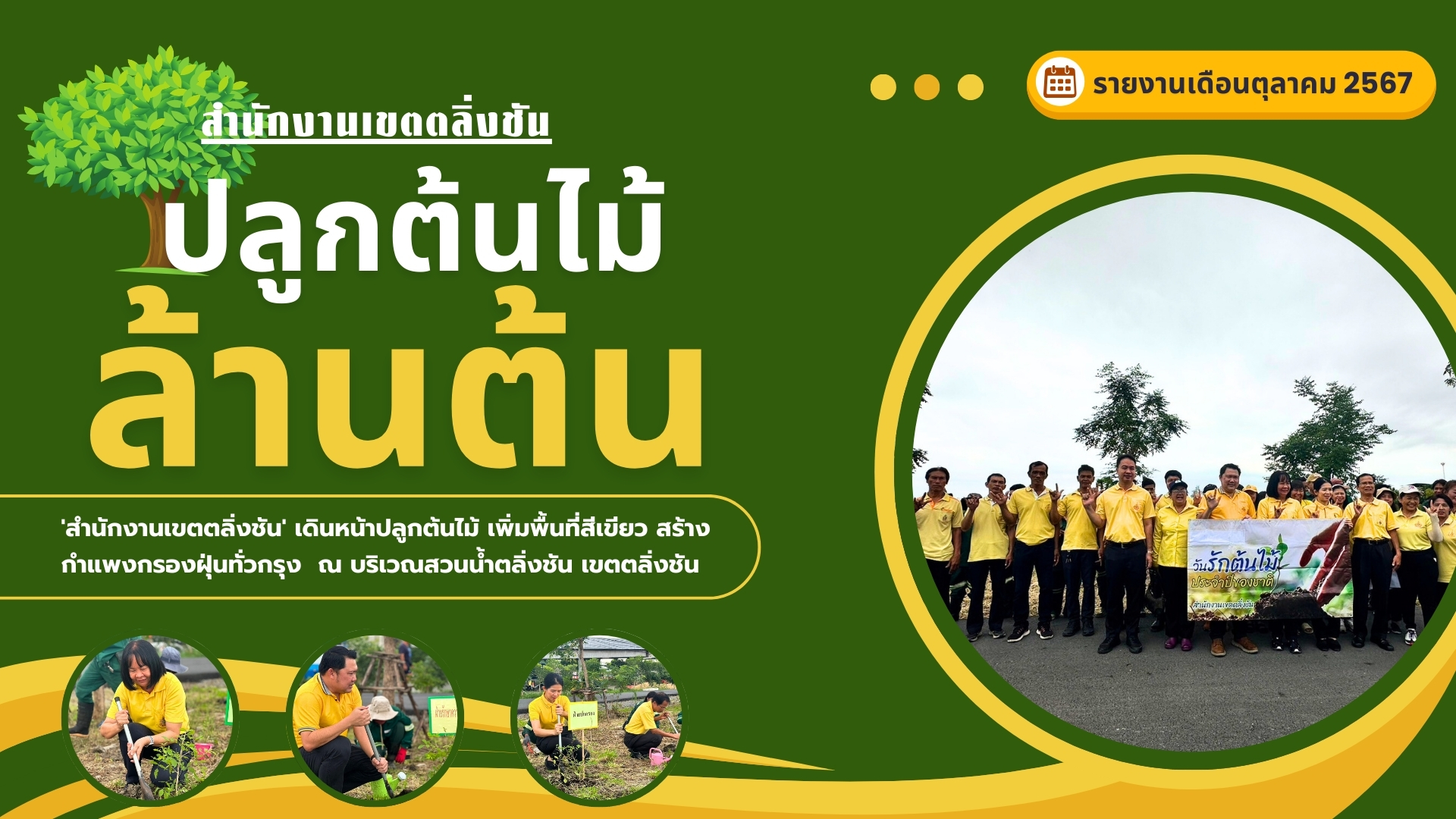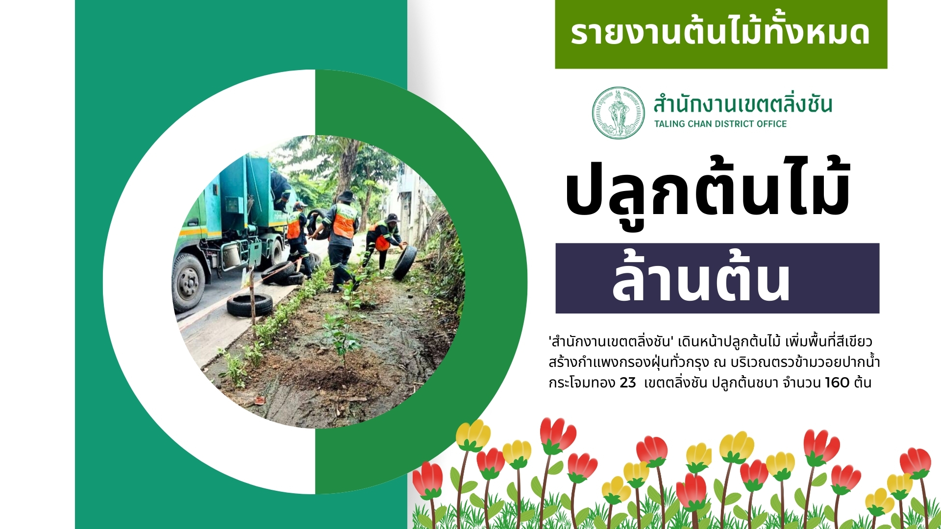 ![]() | - | ปลูกต้นไม้ล้านต้น (ต้นไม้ทั้งหมด) | 0.00 | 100.00 | สำนักงานเขตตลิ่งชัน | ฝ่ายรักษาความสะอาดและสวนสาธารณะ |