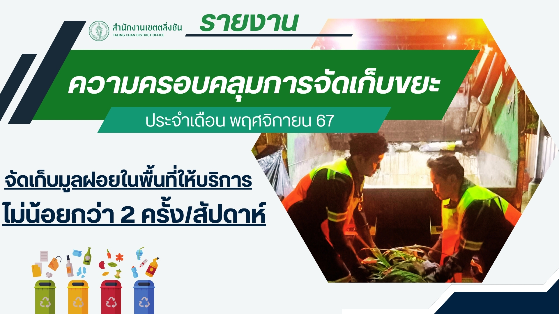 ![]() | - | การจัดเก็บขยะ | 0.00 | 100.00 | สำนักงานเขตตลิ่งชัน | ฝ่ายรักษาความสะอาดและสวนสาธารณะ |