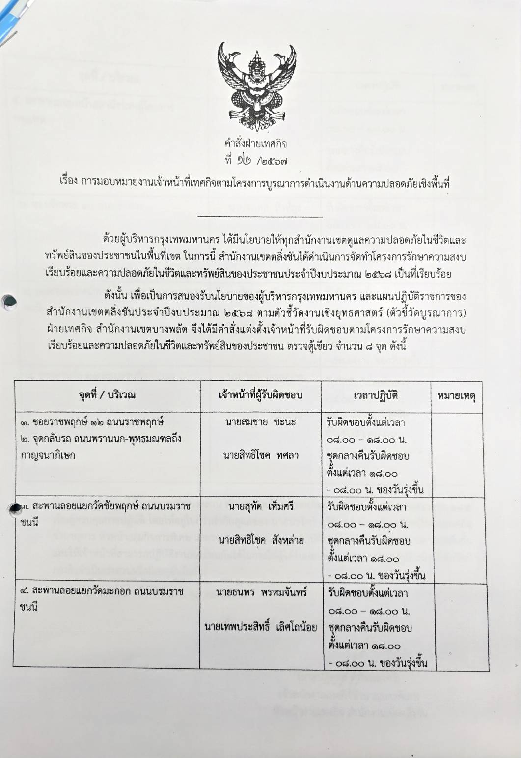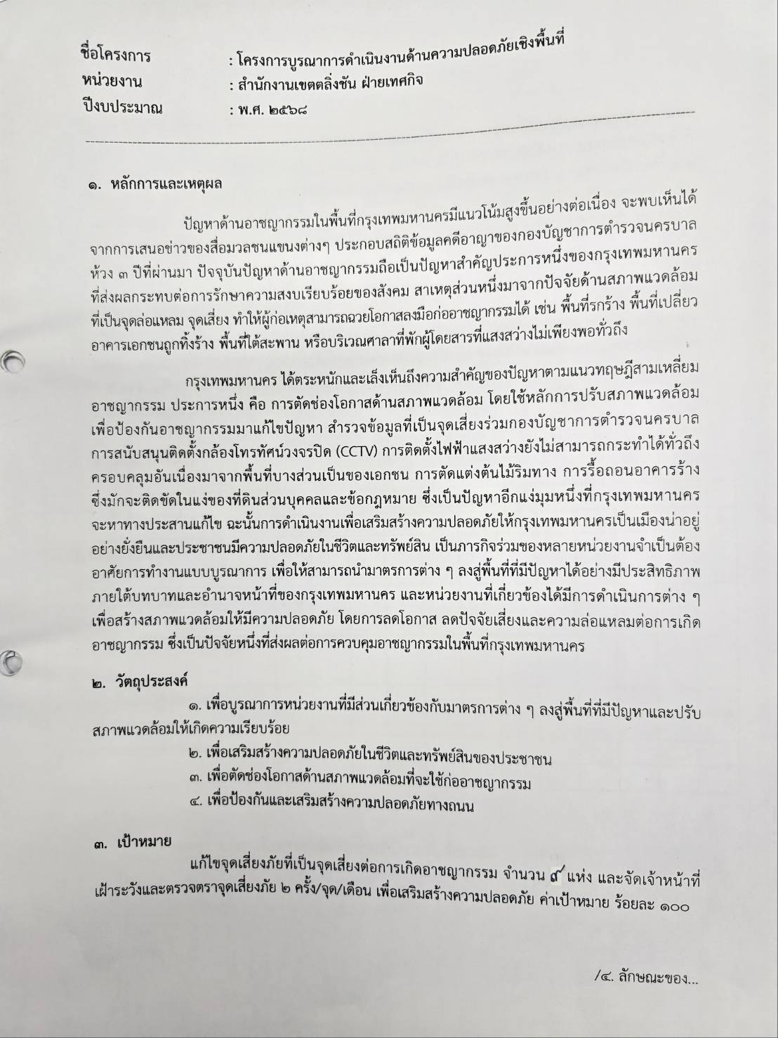 ![]() | - | บูรณาการดำเนินงานด้านความปลอดภัยเชิงพื้นที่ (จุดเสี่ยงอาชญากรรม) | 0.00 | 100.00 | สำนักงานเขตตลิ่งชัน | ฝ่ายเทศกิจ |