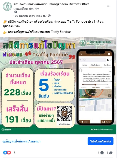 รายละเอียดโครงการ : กิจกรรมการเผยแพร่ข้อมูลข่าวสารของสำนักงานเขตหนองแขมผ่านสื่อ Social Media (ID: 12879)
