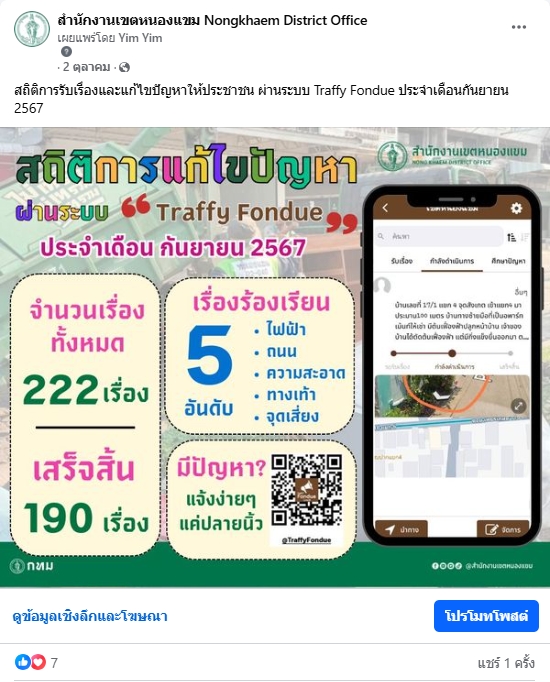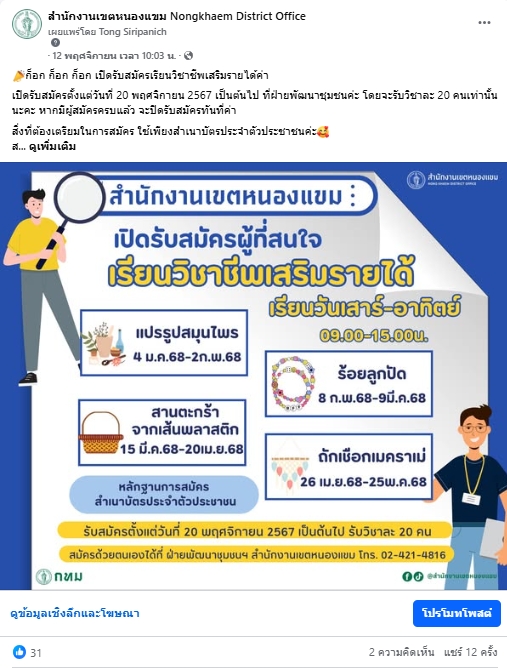 รายละเอียดโครงการ : กิจกรรมการเผยแพร่ข้อมูลข่าวสารของสำนักงานเขตหนองแขมผ่านสื่อ Social Media (ID: 12879)