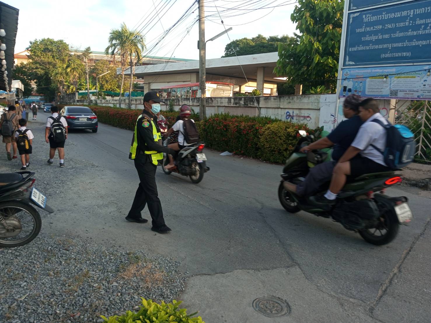 ![]() | 02-12-2024 | 1.00 | ![]() | เจ้าหน้าที่เทศกิจ อำนวยความสะดวกจราจร โรงเรียนคลองกุ่ม | |