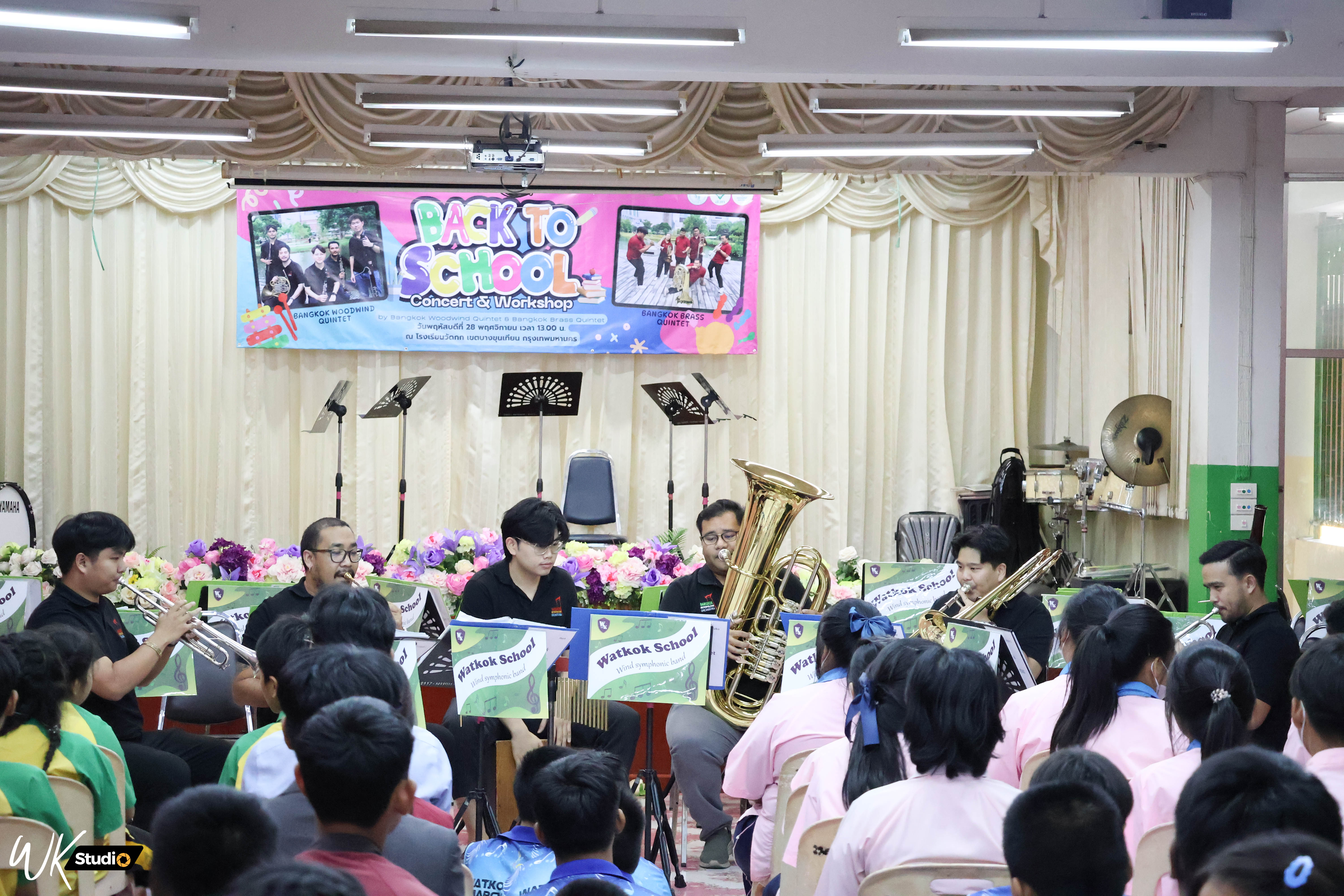 ![]() | 09-12-2024 | 1.00 | ![]() | วันพฤหัสบดีที่ ๒๘ พฤศจิกายน ๒๕๖๗ เวลา ๑๓.๐๐ – ๑๖.๓๐ น. ณ ห้องประชุมนิโลบล โรงเรียนวัดกก เขตบางขุนเทียน บรรเลงโดยวง Bangkok Woodwind Quintet และ Bangkok Brass Quintet ผู้ปฏิบัติงานจำนวน ๑๘ คน จำนวนผู้เข้าร่วมงานประมาณ ๑๐๐ คน | |