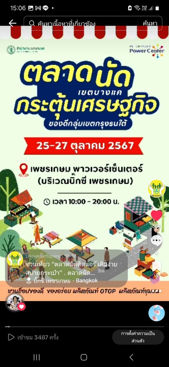 | 04-12-2024 | 1.00 | _241204_18.jpg) | สื่อประชาสัมพันธ์ เรื่อง ตลาดนัดเขตบางแค กระตุ้นเศรษฐกิจ ที่เผยแพร่ ผ่านช่องทาง TIKTOK บางแคแคร์ทุกคน เมื่อวันที่ 17 ตุลาคม 2567 | |