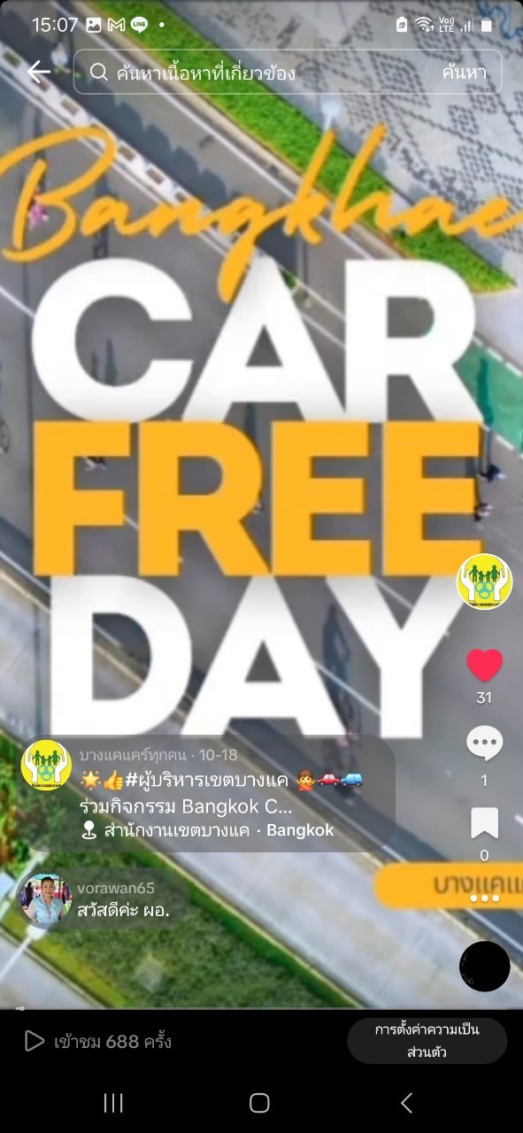 | 11-12-2024 | 720.00 | _241204_16.jpg) | จำนวนการมีส่วนร่วมกับสื่อประชาสัมพันธ์ เรื่อง Bangkok Car Free 2024 ที่เผยแพร่ (Engagement) TIKTOK บางแคแคร์ทุกคน เมื่อวันที่ 18 ตุลาคม 2567 = 720 | |