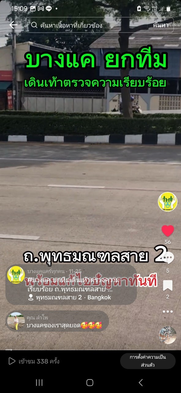 | 11-12-2024 | 1.00 | _241204_9.jpg) | สื่อประชาสัมพันธ์ เรื่อง บางแค ยกทีมเดินเท้าตรวจความเรียบร้อย ถ.พุทธมณฑลสาย 2 พร้อมแก้ไขปัญหาทันที ที่เผยแพร่ ผ่านช่องทาง TIKTOK บางแคแคร์ทุกคน เมื่อวันที่ 25 พฤศจิกายน 2567 | |