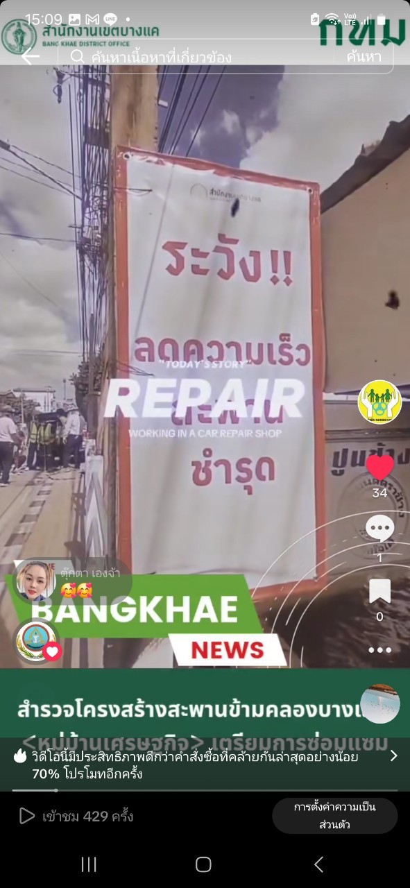 | 11-12-2024 | 1.00 | _241204_11.jpg) | สื่อประชาสัมพันธ์ เรื่อง บางแค ลงพื้นที่ ตรวจสอบเหตุคอสะพานชำรุด ณ สะพานข้ามคลองบางแวก ถนนหมู่บ้านเศรษฐกิจ ที่เผยแพร่ ผ่านช่องทาง TIKTOK บางแคแคร์ทุกคน เมื่อวันที่ 20 พฤศจิกายน 2567 | |