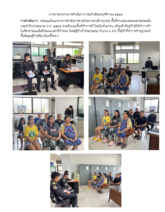 1 | จัดประชุมผู้ค้านอกจุดผ่อนผัน ชี้แจงรายละเอียดกฎเกณฑ์และยกเลิกจุดทำการค้าภายในวันที่ 31 ธันวาคม พ.ศ.2567 | 10.00 | 01-10-2024 | 31-12-2024 |