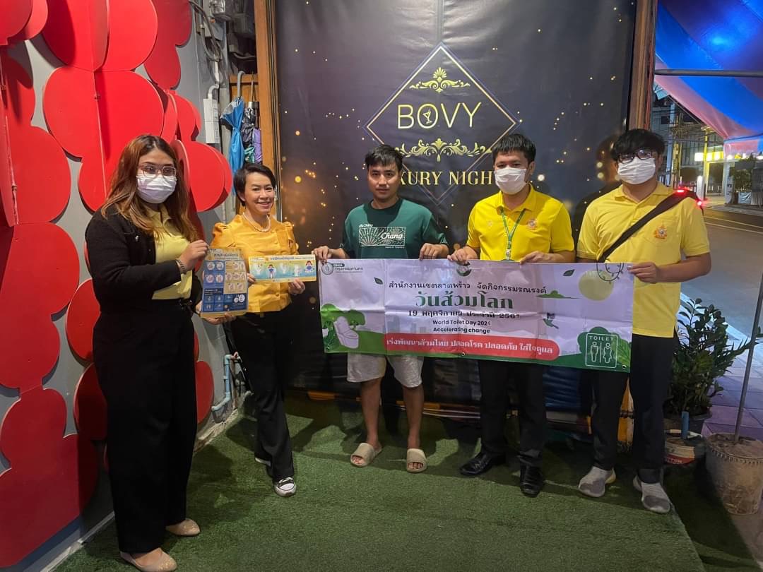 ![]() | 21-11-2024 | 11.00 | กิจกรรมรณรงค์ประชาสัมพันธ์ A Place for Peace ส้วมไทยสะอาดปลอดภัยครอบคลุมทุกกลุ่มวัยเป้าหมาย SDG เพื่อกระตุ้นให้หน่วยงานที่เกี่ยวข้องพัฒนาส้วมสาธารณะในความรับผิดชอบให้สะอาดเพียงพอปลอดภัยและประชาชนมีพฤติกรรมใช้ห้องน้ำเพื่อกระตุ้นให้หน่วยงานที่เกี่ยวข้องพัฒนาส้วมสาธารณะในความรับผิดชอบให้สะอาดเพียงพอปลอดภัยและประชาชนมีพฤติกรรมใช้ห้องน้ำสาธารณะที่ถูกต้อง ณ ร้านอาหาร 3 วัน 2 คืน ,ร้านฟลูมูน ,สโตนเฮน,ร้านส้มกุ้ง,ร้านแรดบาร์,ร้านเบิร์นบาร์,ร้านโบวี่สาขาโชคชัย 4,ร้านครัวพฤกษา ,ร้าน เดอะพลับบิค ,ครกไม้ไทลาว,ร้านPaking toy | ||