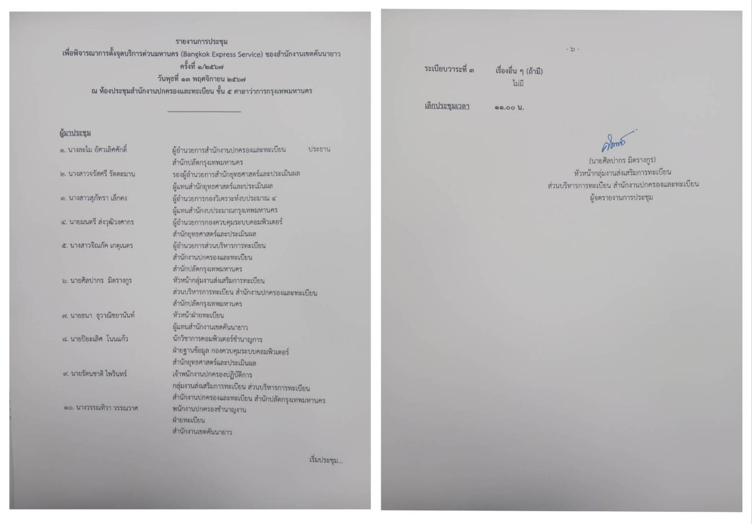 | 3 | พิจารณาและเสนอโครงการเพิ่มจุดบริการด่วนมหานคร (Bangkok Express Service) ให้ผู้บริหารกรุงเทพมหานคร | 20.00 | 16-12-2024 | 15-01-2025 |