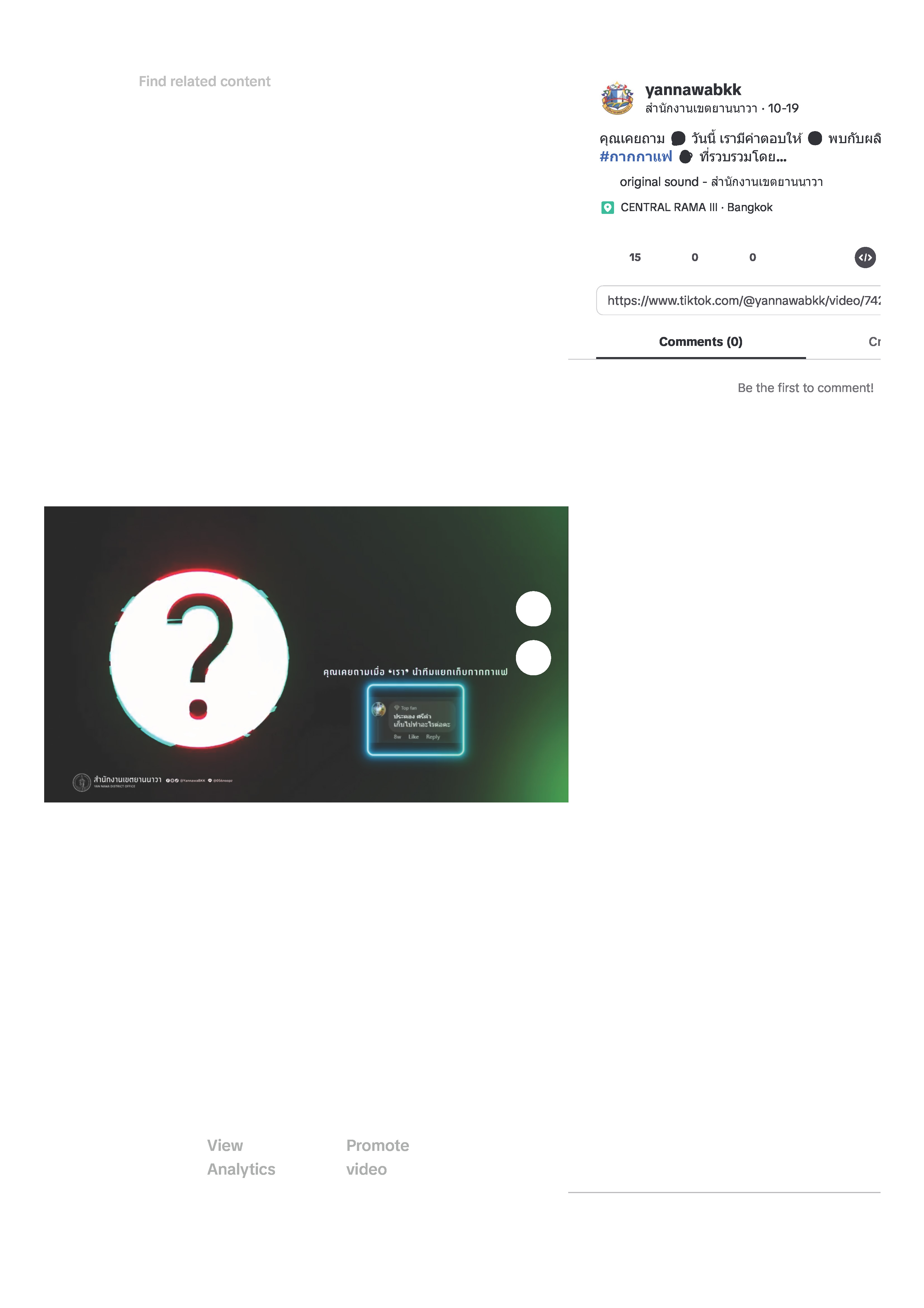 15-11-2024 1.00 สำนักงานเขตยานนาวา ดำเนินการผลิตสื่อประชาสัมพันธ์ ประเภท คลิปวิดีโอสั้น "BEST OF YAN NAWA ผลิตภัณฑ์สบู่จาก กากกาแฟ โดยฝ่ายรักษาความสะอาดฯ " เผยแพร่ผ่านแพลตฟอร์ม TikTok เมื่อวันที่ 19 ตุลาคม 2567