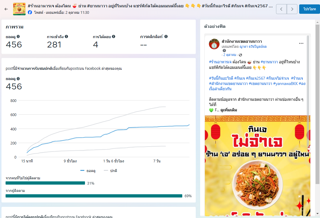 26-11-2024 460.00 จำนวนการมีส่วนร่วมกับสื่อประชาสัมพันธ์ที่เผยแพร่ (Engagement) ผ่านช่องทาง Facebook สำนักงานเขตยานนาวา เมื่อวันที่ 2 ตุลาคม 2567 = 460