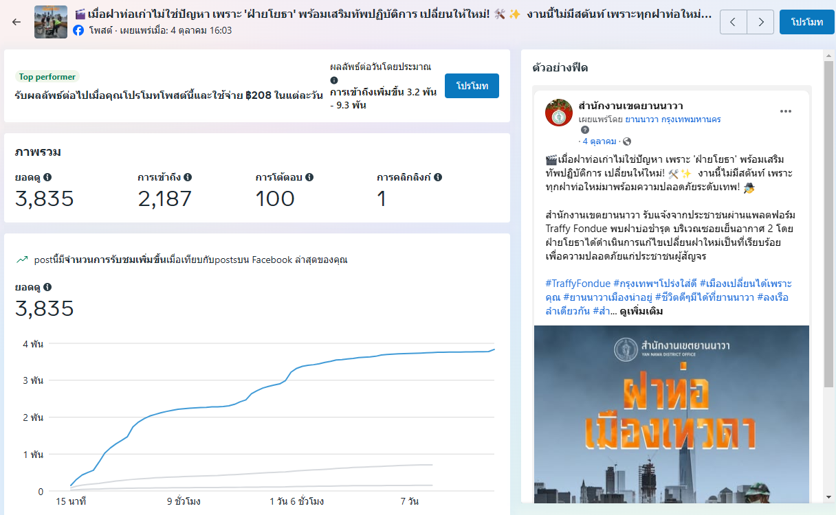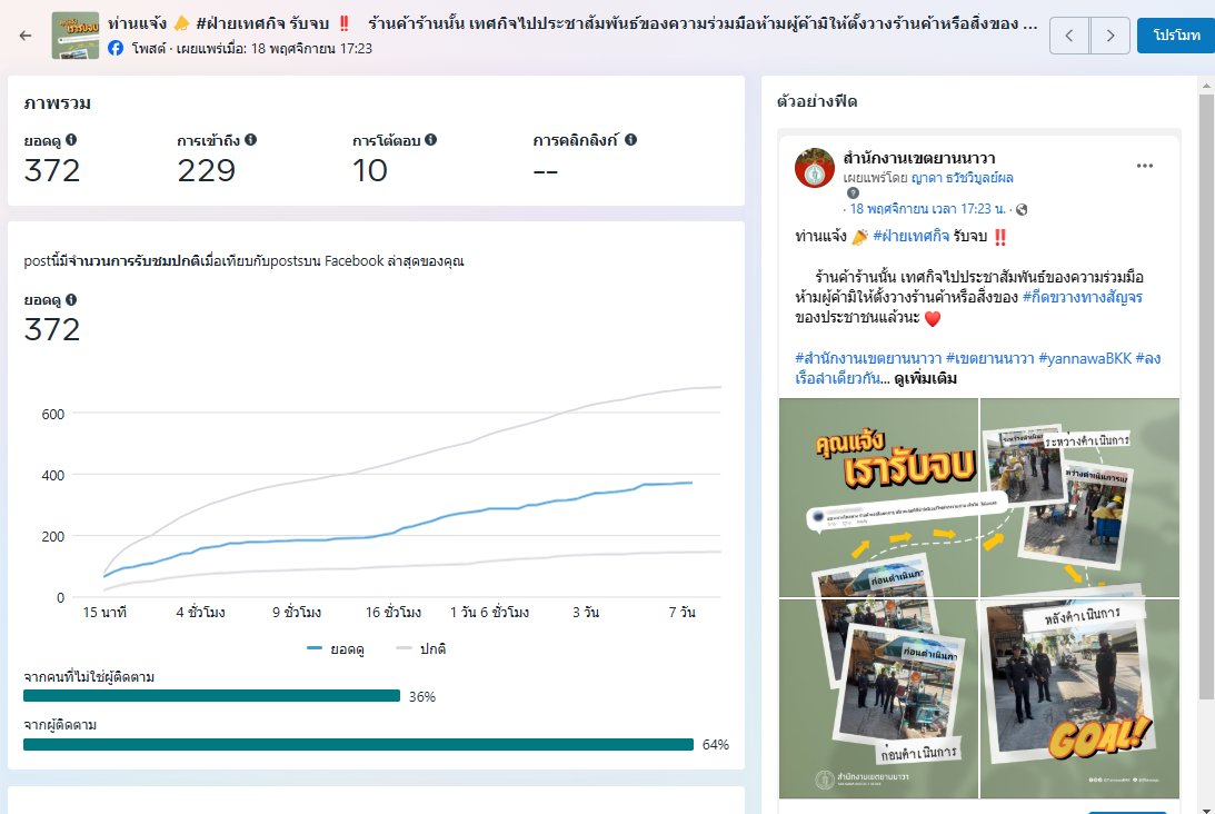 26-11-2024 382.00 จำนวนการมีส่วนร่วมกับสื่อประชาสัมพันธ์ที่เผยแพร่ (Engagement) ผ่านช่องทาง Facebook สำนักงานเขตยานนาวา เมื่อวันที่ 18 พฤศจิกายน 2567 = 382