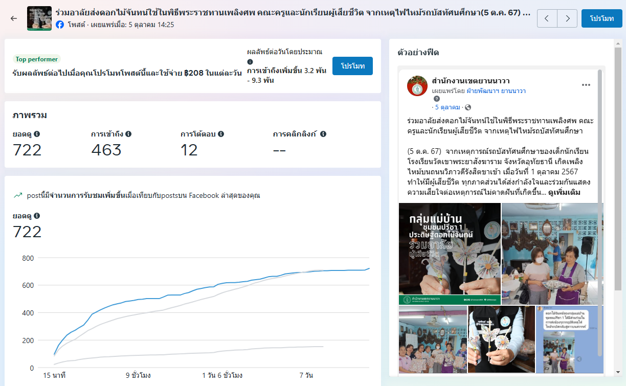 26-11-2024 734.00 จำนวนการมีส่วนร่วมกับสื่อประชาสัมพันธ์ที่เผยแพร่ (Engagement) ผ่านช่องทาง Facebook สำนักงานเขตยานนาวา เมื่อวันที่ 5 ตุลาคม 2567 = 734
