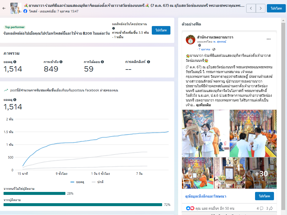 21-11-2024 1.00 สำนักงานเขตยานนาวา ดำเนินการผลิตสื่อประชาสัมพันธ์ ประเภท photo Album “จัดงานสืบสานประเพณีลอยกระทง ณ วัดทองบน” เผยแพร่ผ่านแพลตฟอร์ม Facebook เมื่อวันที่ 10 พฤศจิกายน 2567