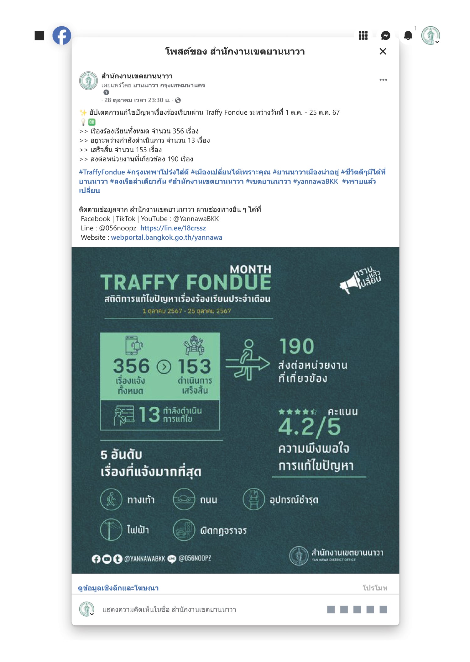 ![]() | - | 26. จำนวนการเข้าถึงสื่อประชาสัมพันธ์ที่เผยแพร่ (Engagement) | 0.00 | 100.00 | สำนักงานเขตยานนาวา | ฝ่ายปกครอง |