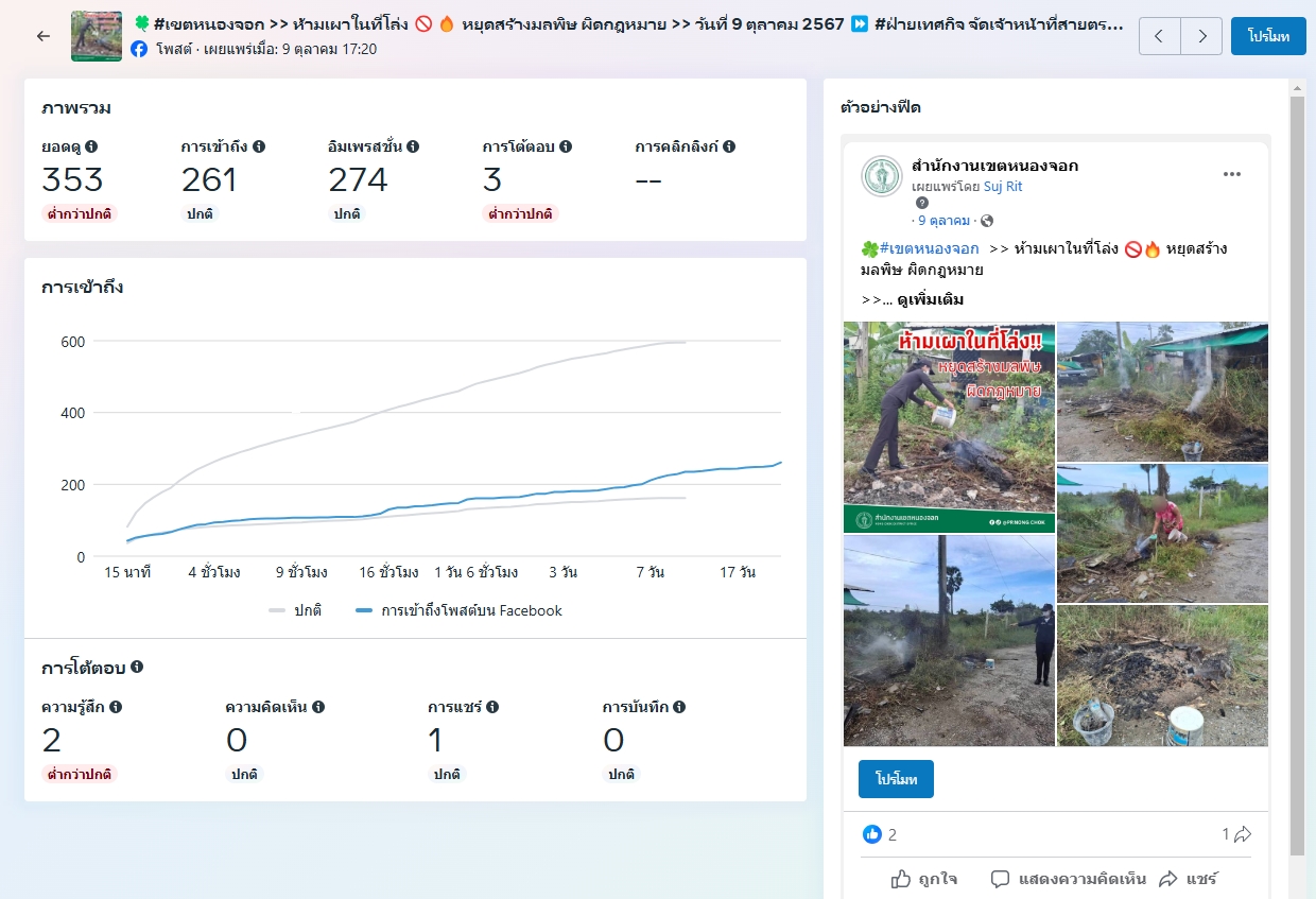 ![]() | - | จำนวนการเข้าถึงสื่อประชาสัมพันธ์ที่เผยแพร่ (Engagement) | 0.00 | 100.00 | สำนักงานเขตหนองจอก | ฝ่ายปกครอง |