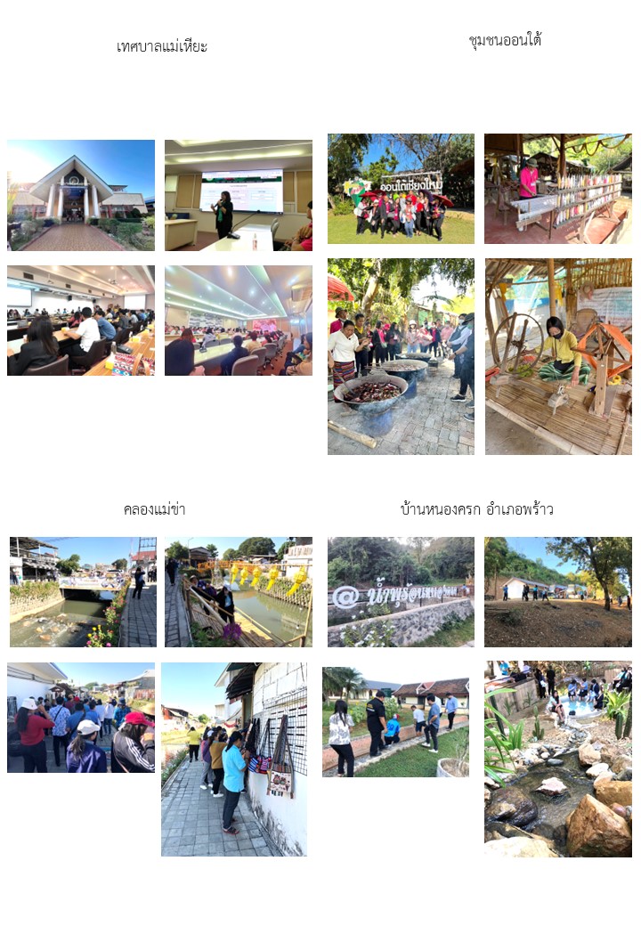 ![]() | 30-01-2024 | 20.00 | ![]() | นำคณะผู้เข้าร่วมสัมมนา ทั้ง 2 รุ่น เข้าร่วมสัมมนาเข้าดูงาน ณ จังหวัดเชียงใหม่ เยี่ยมดูงาน เทศบาลแม่เหียะ เมืองอัจฉริยะด้านบริการสาธารณะ เทศบาลนครเชียงใหม่ คลองแม่ข่า และบ้านหนองครก อำเภอพร้าว เรียบร้อยแล้วทั้ง 2 รุ่น คงเหลือจัดทำฎีกาในการเบิกจ่าย | |