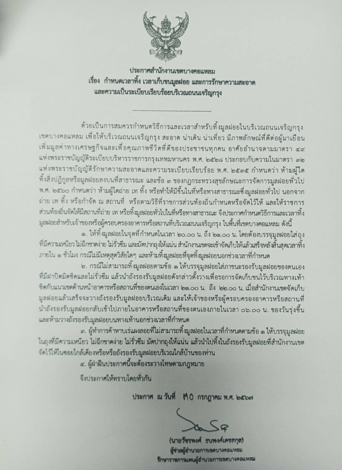 11-12-20240.00กำหนดเวลาทิ้ง เวลา 20.00 - 21.00 น. เวลาเก็บ เวลา 21.00 - 22.00 น. ดำเนินการเก็บขยะบริเวณถนนเจริญกรุงเป็นประจำ
