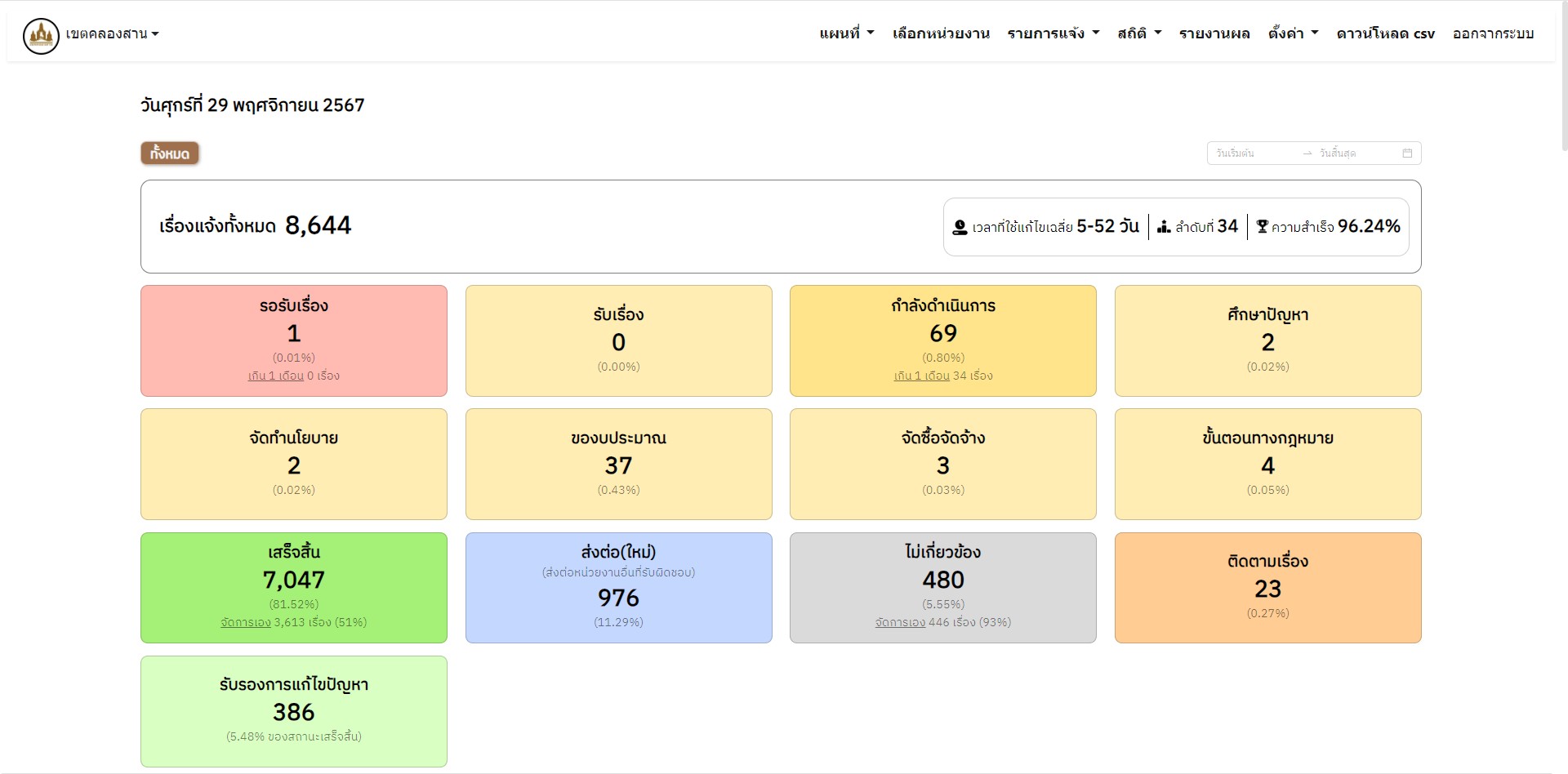 | 11 | รายงานผลการดำเนินงานการแก้ปัญหาข้อร้องเรียนผ่านระบบ Traffy Foundue ประจำเดือน สิงหาคม 2568 | 5.00 | 01-08-2025 | 31-08-2025 |