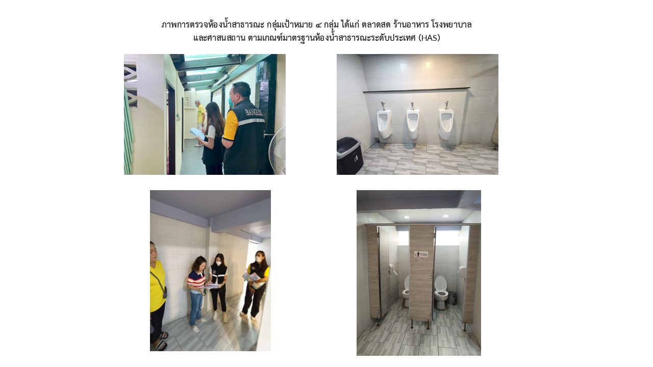 3 | ดำเนินการรายงานผลการตรวจประเมินห้องน้ำสาธารณะ ระยะที่ 1 จำนวน 4 กลุ่ม เป้าหมาย ได้แก่ ตลาดสด ร้านอาหาร โรงพยาบาล และ ศาสนสถาน | 10.00 | 01-01-2025 | 31-01-2025 |