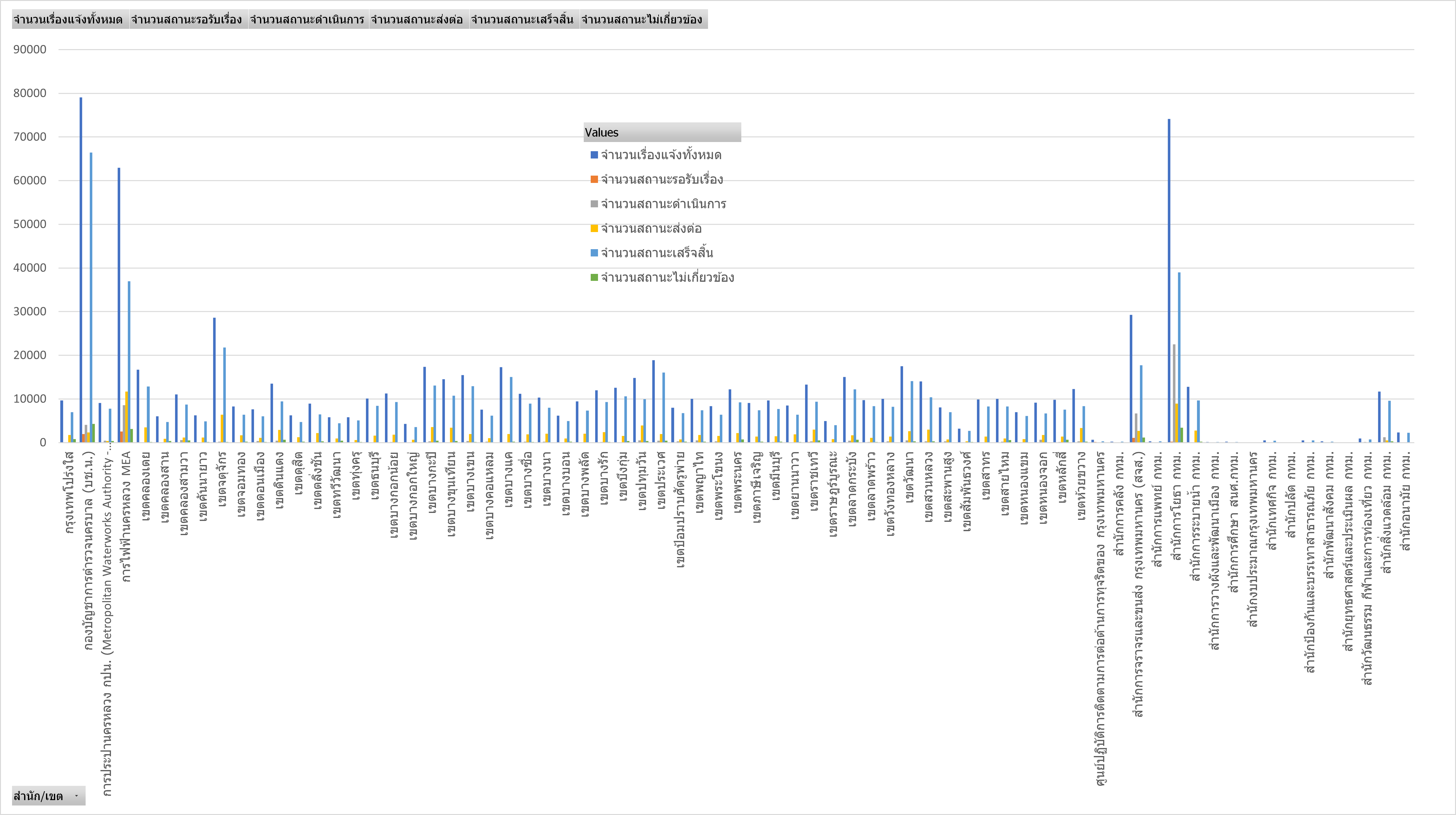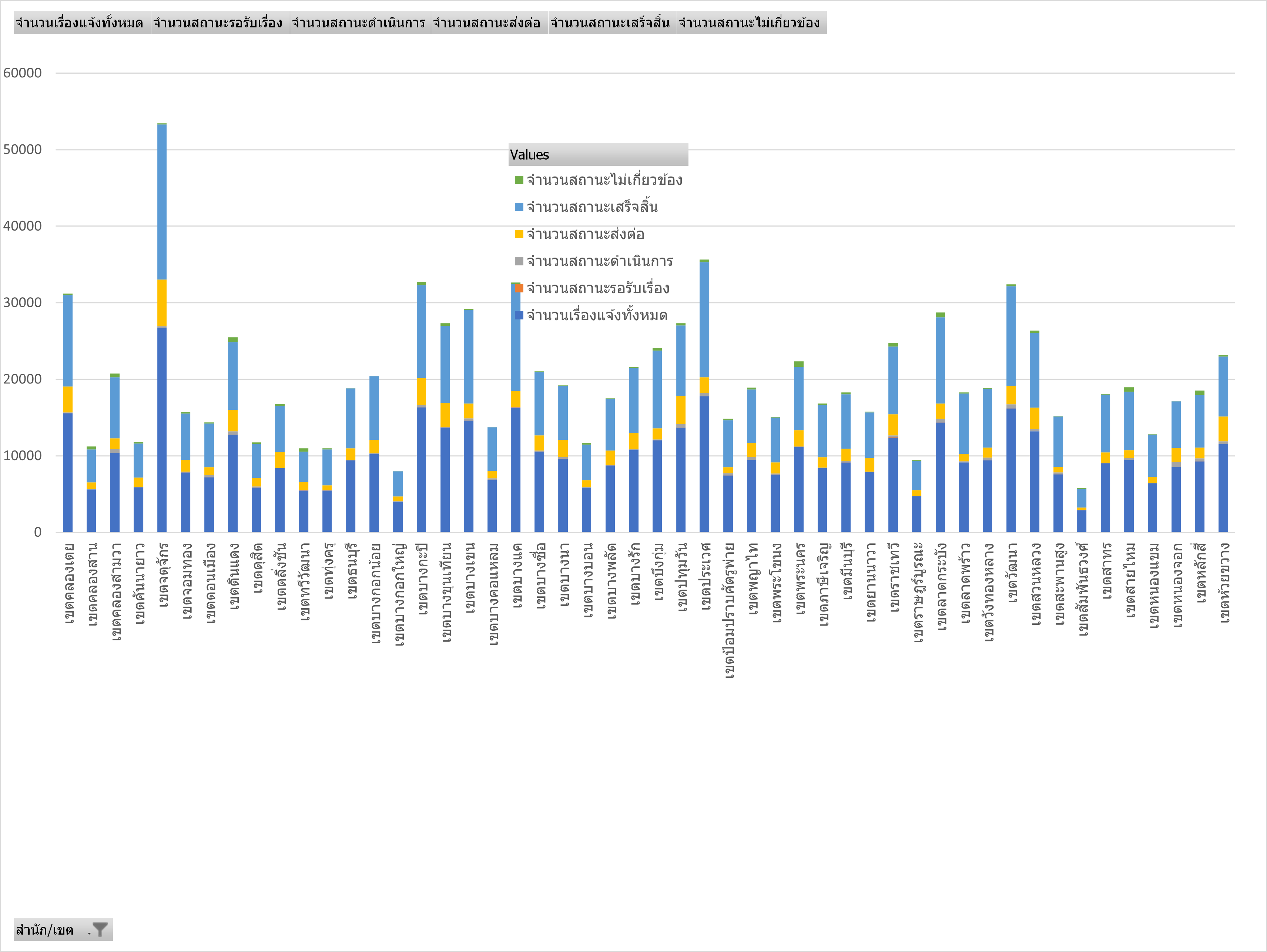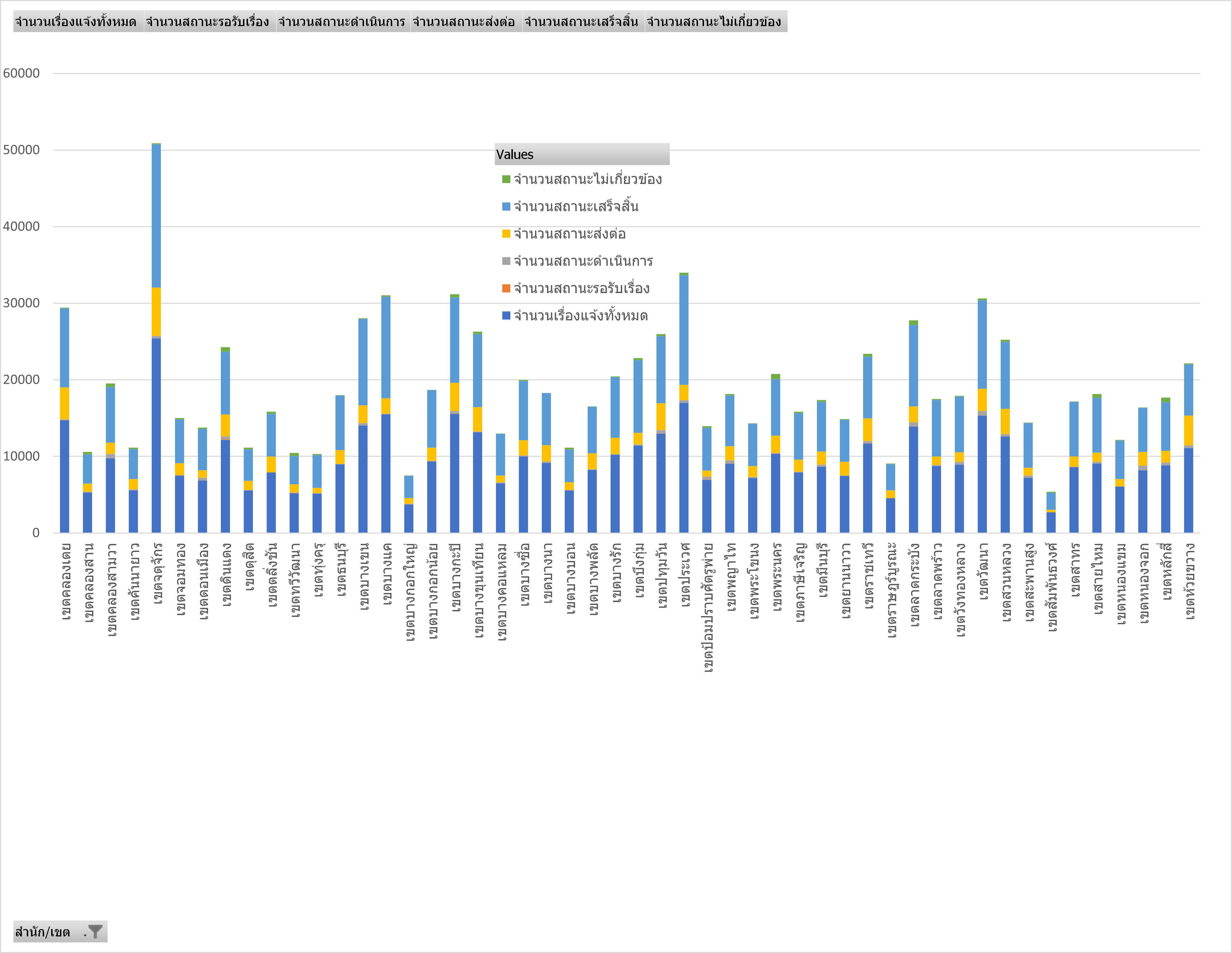 1 | พิจารณาข้อมูลสถิติเรื่องร้องเรียน/ร้องทุกข์ จากแพลตฟอร์ม Traffy Fondue ทั้งหมด จำนวน 24 ประเภท เพื่อวิเคราะห์ปัญหาเรื่องร้องเรียน/ร้องทุกข์ เพื่อพิจารณาลงพื้นที่ตรวจสอบ ประจำเดือน ตุลาคม 2566 | 5.00 | 01-10-2023 | 31-10-2023 |