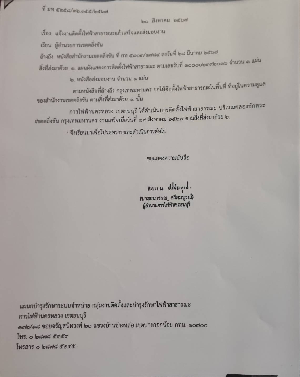 รายละเอียดโครงการ : ติดตั้ง/ซ่อม ไฟฟ้าส่องสว่างริมคลอง (ดวง) (ID: 241)