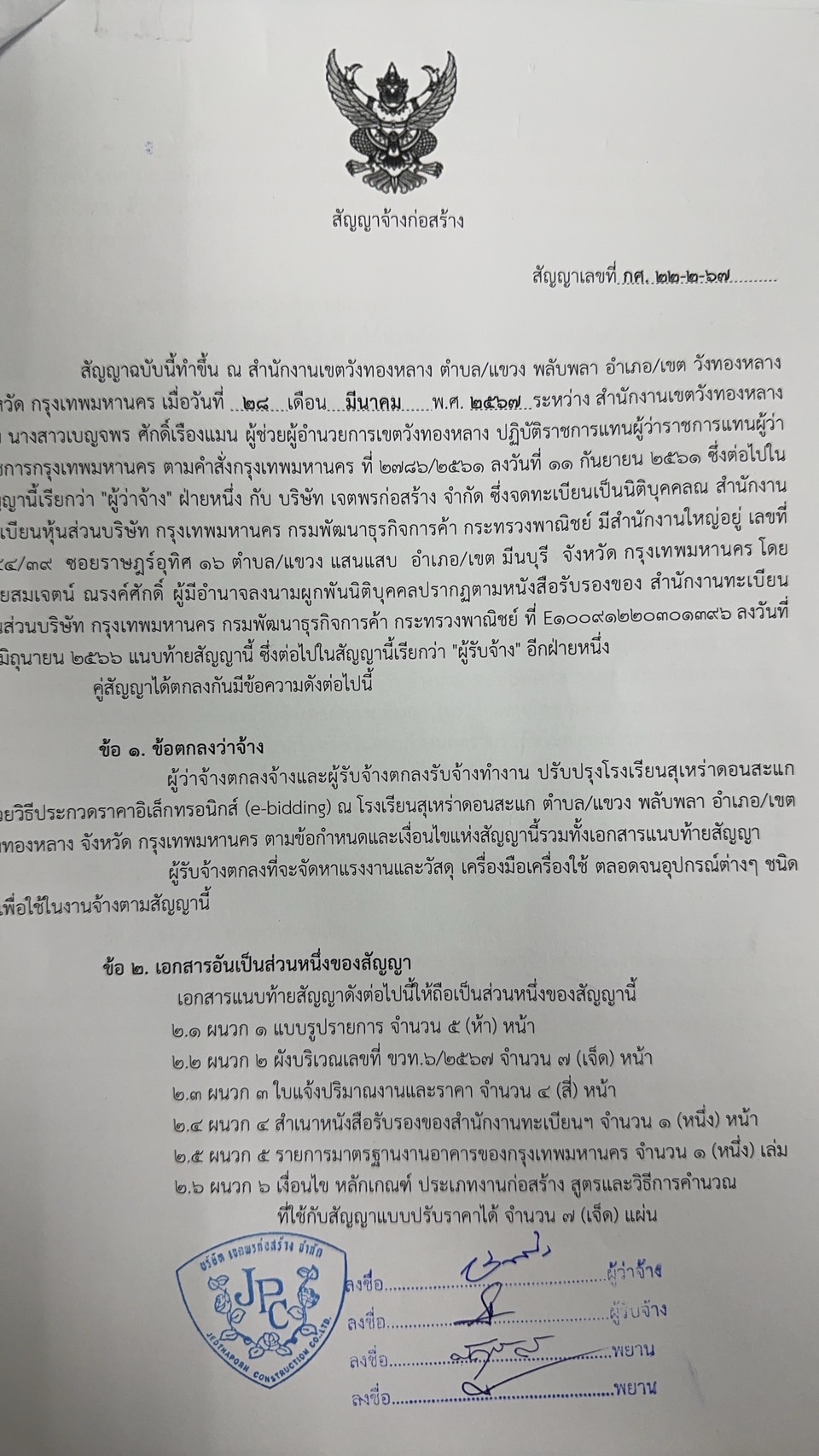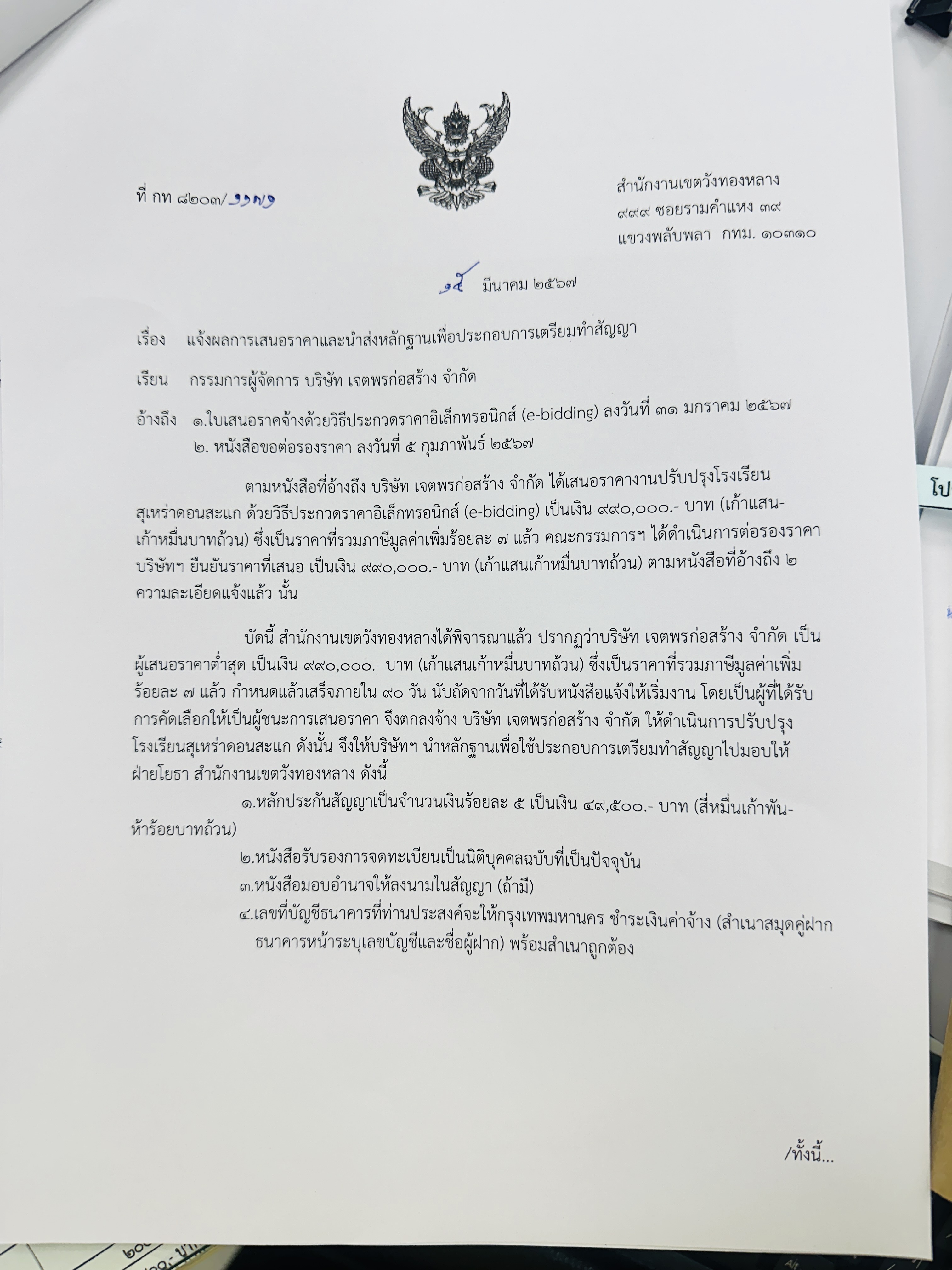 26-03-20240.00แจ้งให้ผู้รับรับจ้าง บริษัท เจตพรก่อสร้าง ให้มาวางค้ำประกันสัญญา