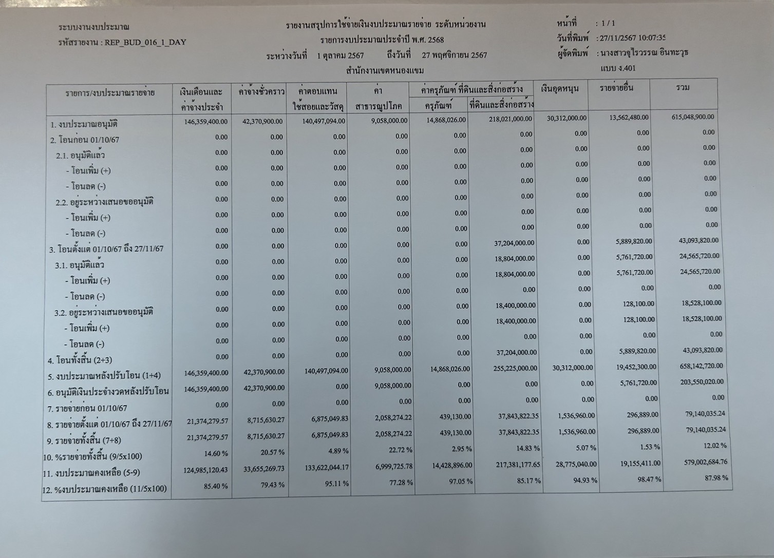 11 | เร่งรัดการเบิกจ่ายงบประมาณโดยกำหนดวาระการติดตามงบประมาณในการประชุมผู้บริหารสำนักงานเขตเป็นประจำทุกเดือน | 10.00 | 01-08-2025 | 31-08-2025 |