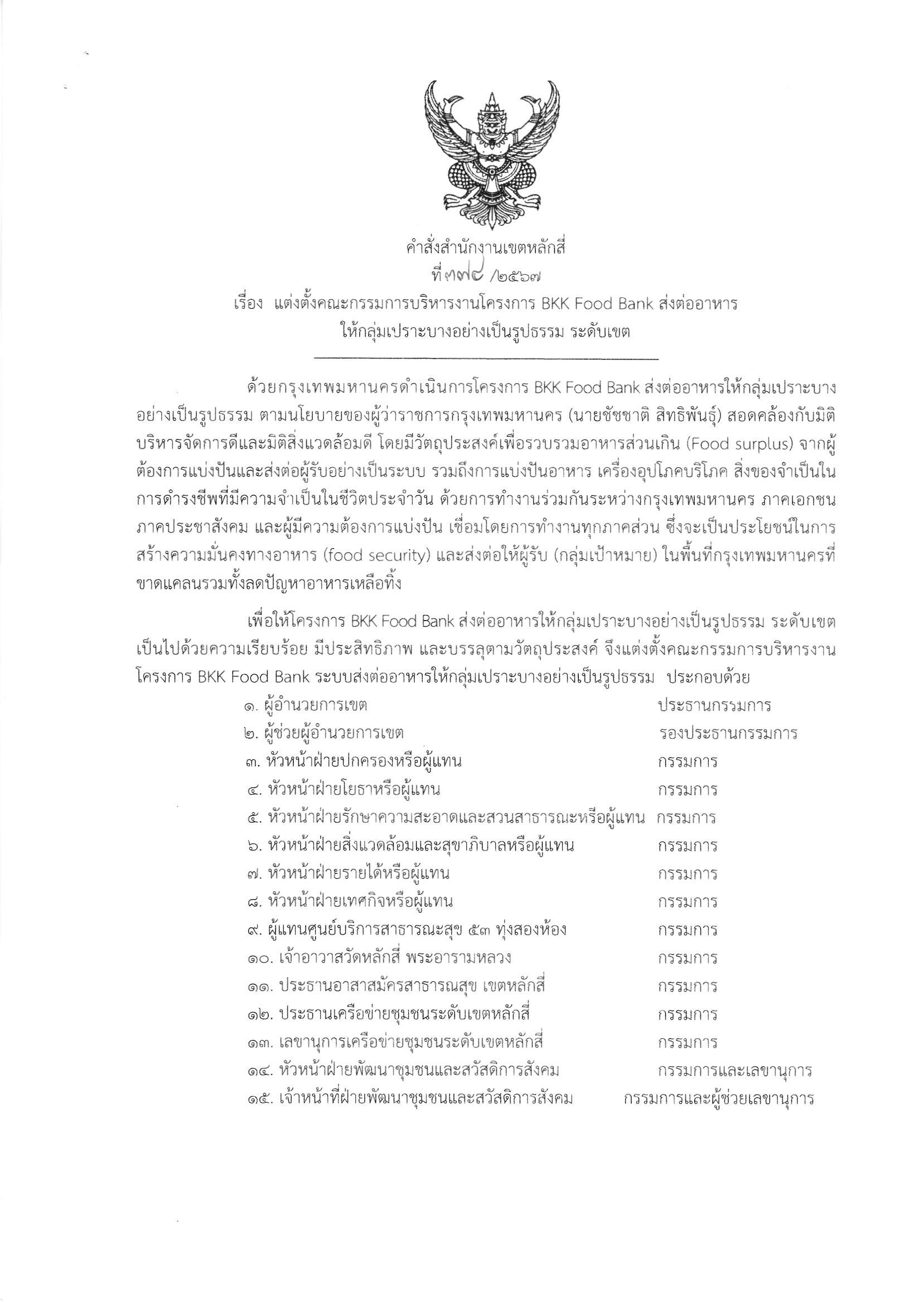 ![]() | 01-11-2024 | 0.00 | ![]() | ได้ดำเนินการจัดทำคำสั่งสำน้กงานเขตหลักสี่ ที่ 374/2567 เรื่อง แต่งตั้งคณะกรรมการบริหารงานโครงการ BKK FOOD BANK ส่งต่ออาหารให้กลุ่มเปราะบางอย่างเป็นรูปธรรม ระดับเขต และวางแผนการดำเนินการ เรียบร้อยแล้ว | |