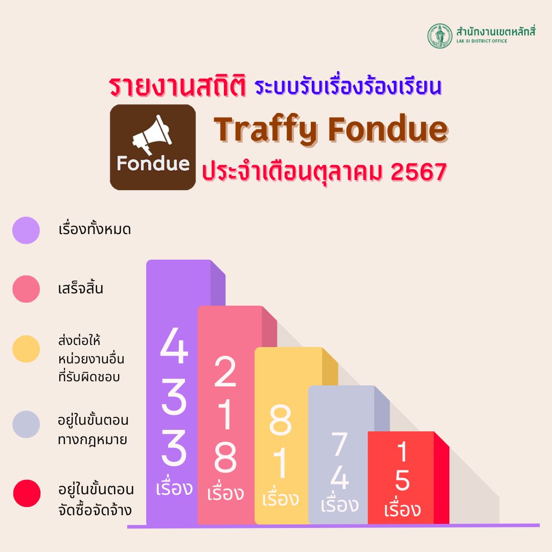 ![]() | 09-12-2024 | 1.00 | สำนักงานเขตหลักสี่ ดำเนินการผลิตสื่อประชาสัมพันธ์ ผ่านช่องทาง Facebook เรื่อง "รายงานสถิติการแก้ไขปัญหาเรื่องร้องเรียนทาง Traffy Fondue ของสำนักงานเขตหลักสี่ ประจำเดือน ตุลาคม 2567 เมือวันที่ 1 พฤศจิกายน 2567 | ||
