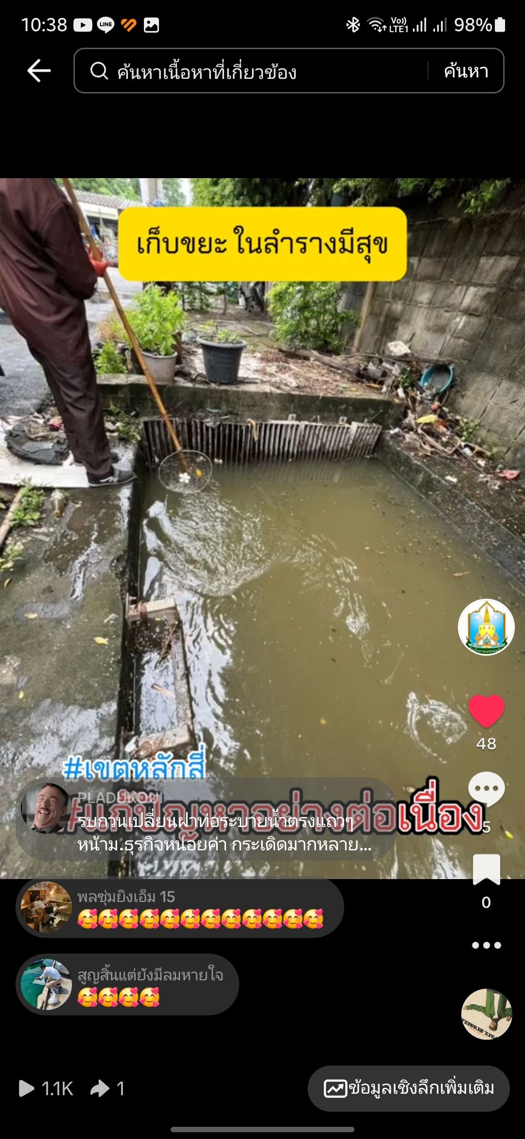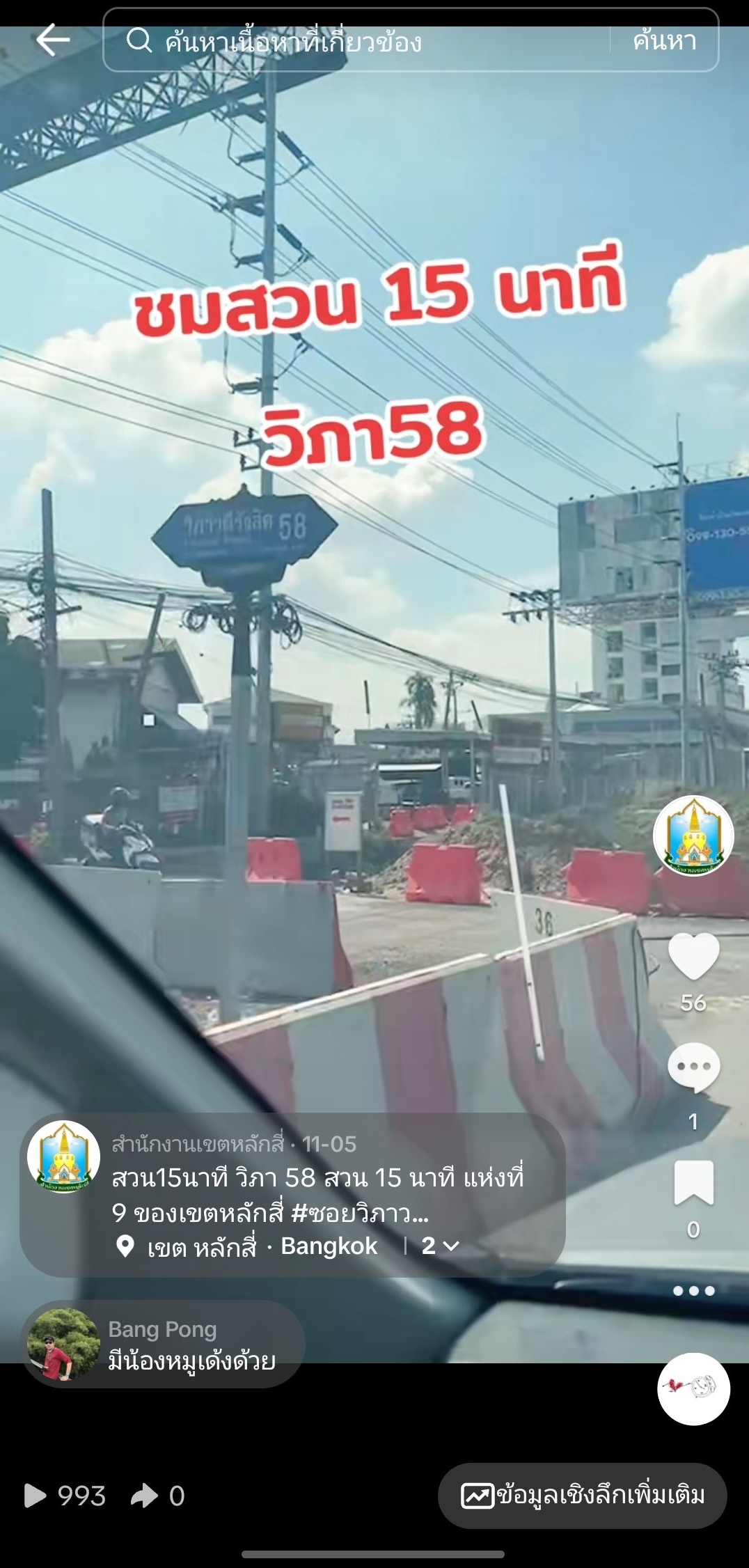 ![]() | 11-12-2024 | 1.00 | สำนักงานเขตหลักสี่ ดำเนินการผลิตสื่อประชาสัมพันธ์ ประเภท คลิปวิดีโอสั้น “ปรับภูมิทัศน์สวนสาธารณะเคหะชุมชนบางบัว ซอยพหลโยธิน 49/1" เผยแพร่ผ่านแพลตฟอร์ม TikTok เมื่อวันที่ 14 พฤศจิกายน 2567 | ||