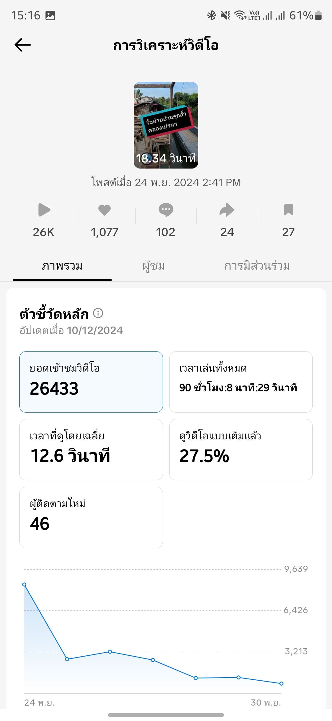 ![]() | 12-12-2024 | 27,363.00 | สำนักงานเขตหลักสี่ ดำเนินการผลิตสื่อประชาสัมพันธ์ ประเภท คลิปวิดีโอสั้น "ไล่รื้อแล้ว! บ้านรุกล้ำคลอง" เผยแพร่ผ่านแพลตฟอร์ม TikTok เมื่อวันที่ 24 พฤศจิกายน 2567 มียอดเข้าชมวิดีโอ 26433 ยอดกดหัวใจ 1077 ยอดคอมเม้นท์ 102 ยอดแชร์ 24 รวม 27636 | ||