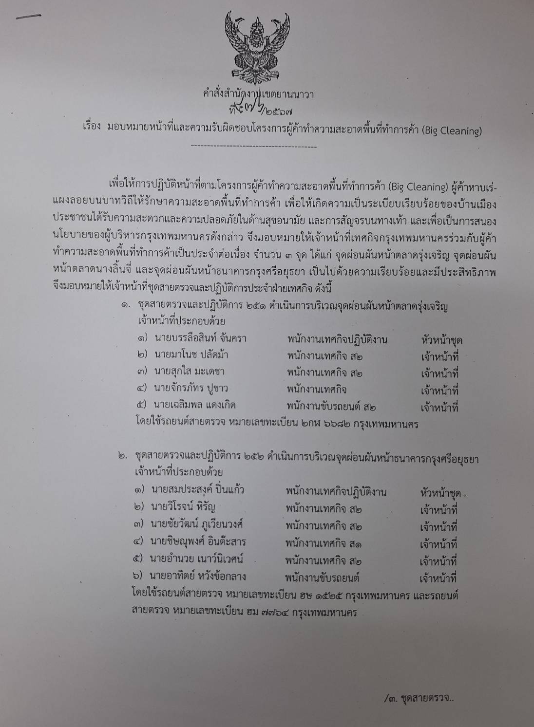 | 1 | กำหนดจุดทำการค้าที่จะดำเนินการทำความสะอาดพื้นที่ทำการค้า | 10.00 | 01-10-2024 | 31-10-2024 |