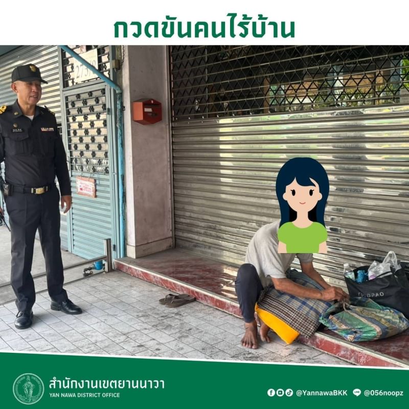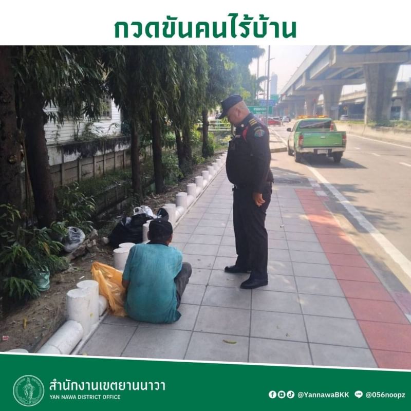 | 11-02-2025 | 1.00 |  | วันที่ 28 ม.ค. 68 นายสุวิน ชุมชัย หัวหน้าฝ่ายเทศกิจ เขตยานนาวา มอบหมายเจ้าหน้าที่เทศกิจชุดสายตรวจ 252 พร้อมเจ้าหน้าที่ฝ่ายรักษาความสะอาดฯ ลงพื้นที่สำรวจบุคคลไร้บ้านที่ได้เข้ามาพักอาศัยหลับนอน และจัดเก็บขยะและสิ่งของต่างๆ ที่อาจก่อให้เกิดแหล่งสะสมเชื้อโรค บริเวณทางเดินริมคลองวัดทองบน ถนนพระราม 3 เจ้าหน้าที่ได้แนะนำบุคคลไร้บ้านให้รับทราบถึงการบริการที่พักอาศัย เพื่อเข้าสู่กระบวนการแก้ไขปัญหาและการให้ความช่วยเหลือจากหน่วยงานของภาครัฐ รวมถึงแนะนำ ตักเตือนการกระทำใดๆที่ไม่ถูกต้องตามกฎหมาย โดยจะประสานไปยังหน่วยงานที่เกี่ยวข้องเพื่อส่งต่อให้ประชาชนได้รับความช่วยเหลือต่อไป ทั้งนี้ พี่น้องประชาชนสามารถร่วมช่วยเหลือบุคคลเหล่านี้ได้ โดยการแจ้งสายด่วน ศูนย์ช่วยเหลือสังคม (พม.) โทร.1300 ตลอด 24 ชม. | |