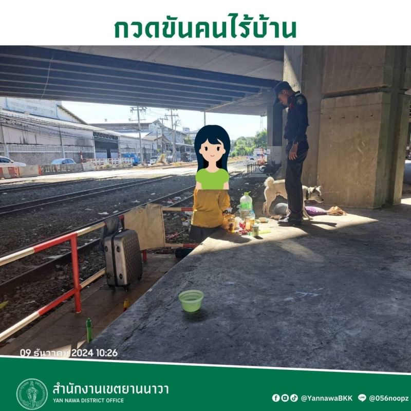 นายสุวิน ชุมชัย หัวหน้าฝ่ายเทศกิจ เขตยานนาวา มอบหมายเจ้าหน้าที่เทศกิจชุดสายตรวจลงพื้นที่สำรวจบุคคลไร้บ้านที่ได้เข้ามาพักอาศัยหลับนอนบริเวณใต้ทางด่วนสาธุประดิษฐ์ เจ้าหน้าที่ได้แนะนำบุคคลไร้บ้านให้รับทราบถึงการบริการที่พักอาศัย เพื่อเข้าสู่กระบวนการแก้ไขปัญหาและการให้ความช่วยเหลือจากหน่วยงานของภาครัฐ รวมถึงแนะนำ ตักเตือนการกระทำใดๆที่ไม่ถูกต้องตามกฎหมาย
