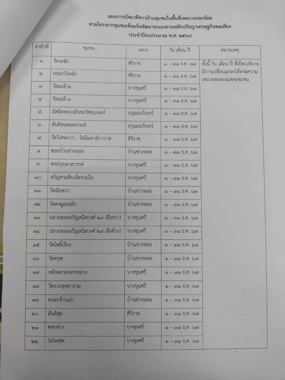 ![]() | - | ส่งเสริมการใช้งบประมาณ 200,000 บาท ต่อชุมชน (มูลค่าเงินที่เบิกจ่าย) | 7,200,000.00 | 100.00 | สำนักงานเขตบางกอกน้อย | ฝ่ายพัฒนาชุมชนและสวัสดิการสังคม |