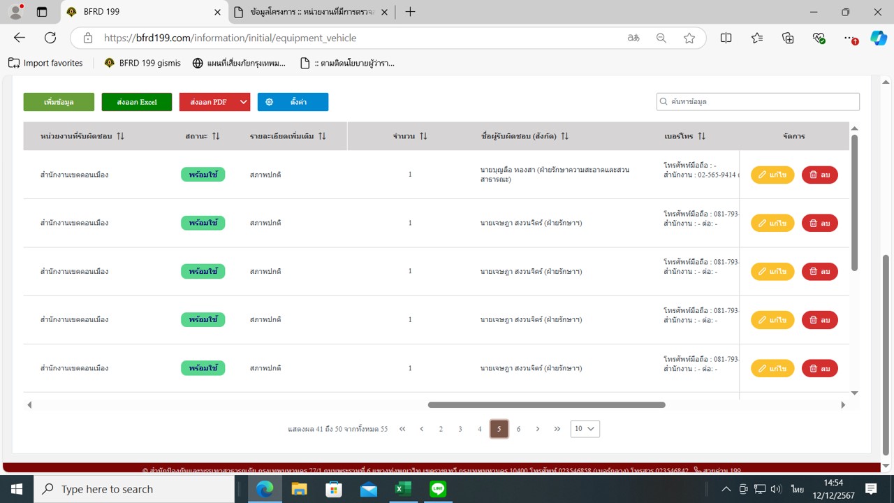 ![]() | 25-06-2025 | 0.00 | ![]() | ดำเนินการปรับปรุงข้อมูลยานพาหนะในระบบสารสนเทศภูมิศาสตร์(GIS) และระบบการบริหาร (MIS) โดยแก้ไขและอัปเดตฐานข้อมูลซึ่งมีข้อมูลที่ซ้ำกันจึงได้มีการแก้ไขจำนวนแล้ว ข้อมูล ณ วันที่ 25 มิถุนายน 2568 จำนวนยานพาหนะที่สามารถนำมาใช้สนับสนุนงานป้องกันและบรรเทาสาธารณภัยที่อยู่ในความรับผิดชอบของสำนักงานเขตดอนเมือง มีจำนวนทั้งสิ้น 56 คัน ใช้งานได้ จำนวน 56 คัน ไม่พร้อมใช้งาน จำนวน 0 คัน | |