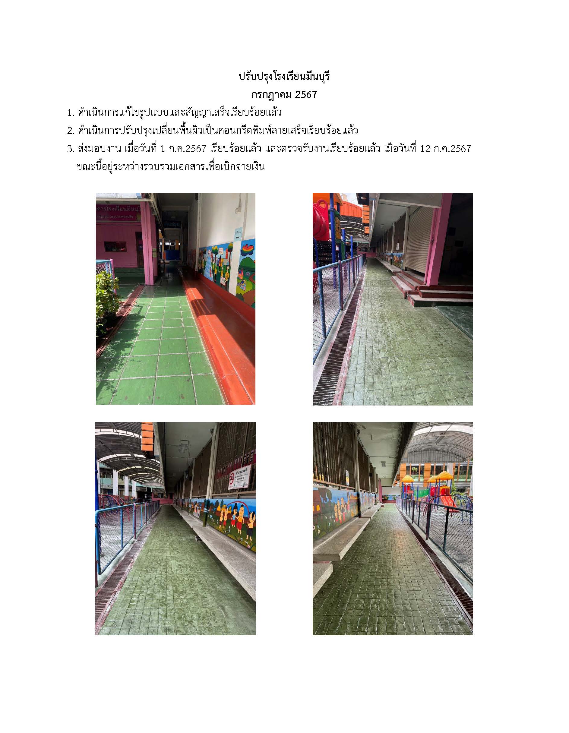 25-05-20240.00- แก้ไขรูปแบบและรายการเรียบร้อยแล้ว - ดำเนินการตามสัญญาไปแล้ว 80% โดยทำพื้นคอนกรีตพิมพ์ลายพร้อมเคลือบสีเสร็จเรียบร้อยแล้ว