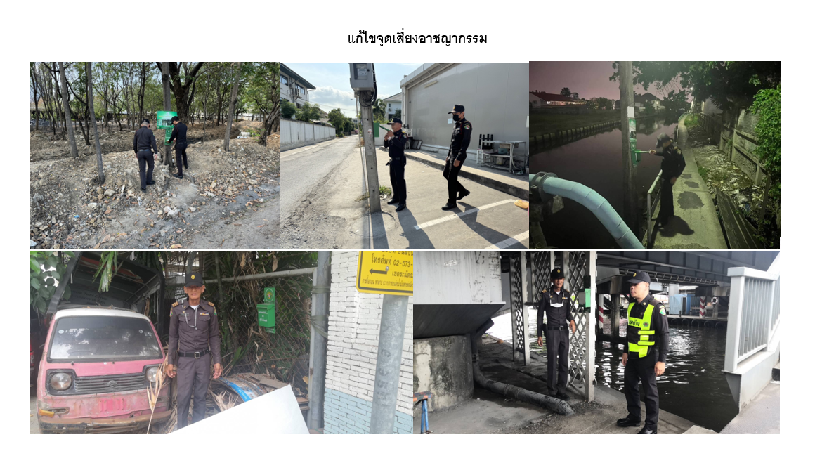 ![]() | 20-06-2024 | 0.00 | ![]() | - จัดเจ้าหน้าที่ตรวจจุดเสี่ยงอาชญากรรมท้ัง 6 จุด ทุกวันอย่างน้อย 2 ครั้ง/จุด จุดที่ 1 ใต้สะพานคลองตัน (ฝั่งถนนเพชรบุรี) จุดที่ 2 สวนหย่อมศรีนครินทร์ จุดที่ 3 ถนนกำแพงเพชร 7 จุดที่ 4 ซอยพัฒนาการ 20 แยก 11/2 จุดที่ 5 ซอยพัฒนาการ 54 (ริมคลองหัวหมาก) จุดที่ 6 บนอุโมงค์พัฒนาการปากซอยพัฒนาการ 29 - จัดทำรายงานผลการตรวจตามแบบรายงานผลการดำเนินการแก้ไขจุดเสี่ยงภัย (จุดเสี่ยงต่อการเกิดอาชญากรรม) เป็นเอกสารส่งสำนักเทศกิจ ประจำเดือนพฤษภาคม 2567 ตามหนังสือ ที่ กท 7709/3930 ลงวันที่ 10 มิถุนายน 2567 | |