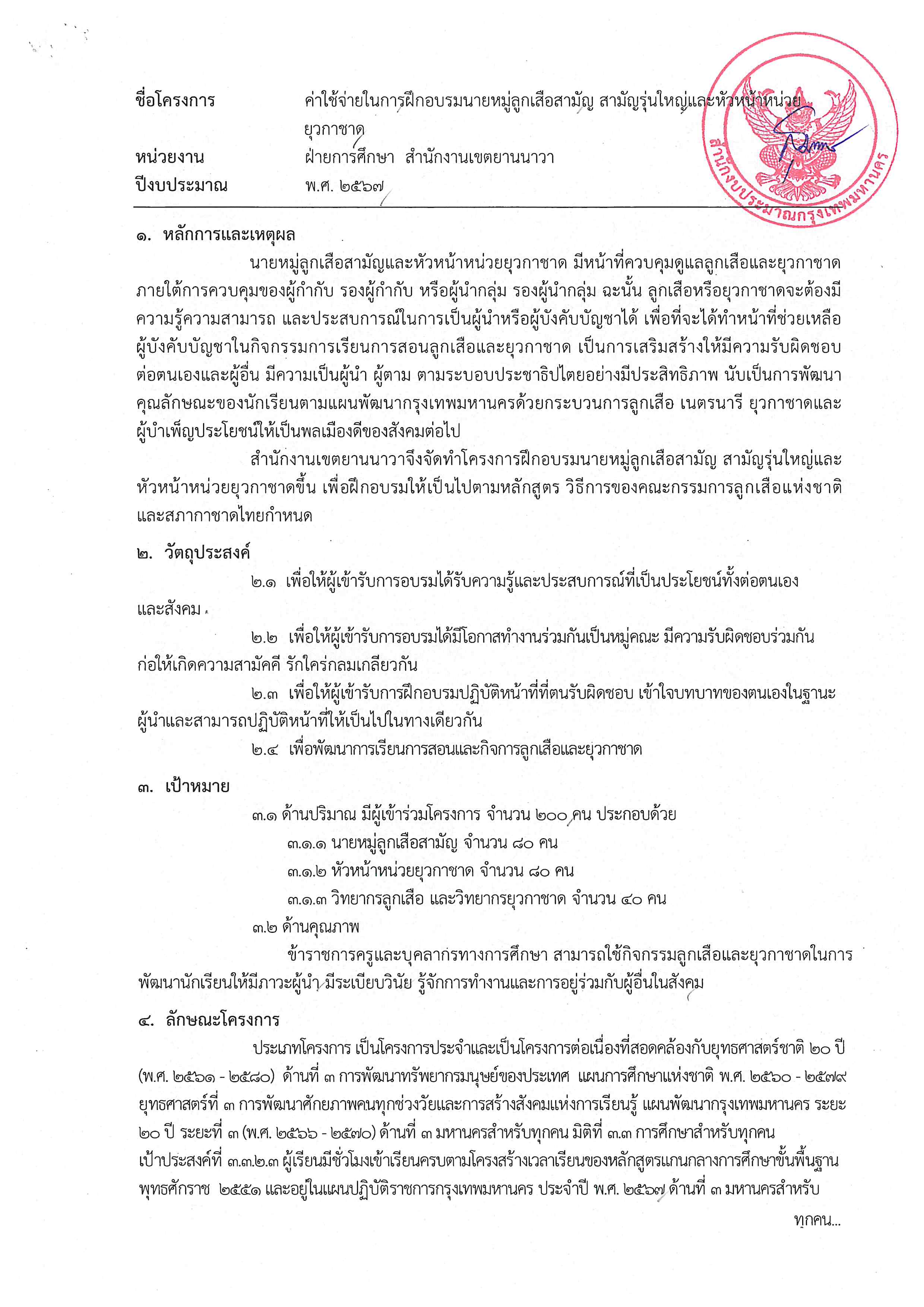 รายละเอียดโครงการ : ค่าใช้จ่ายในการฝึกอบรมนายหมู่ลูกเสือสามัญ สามัญรุ่นใหญ่และหัวหน้าหน่วยยุวกาชาด (ID: 3374)